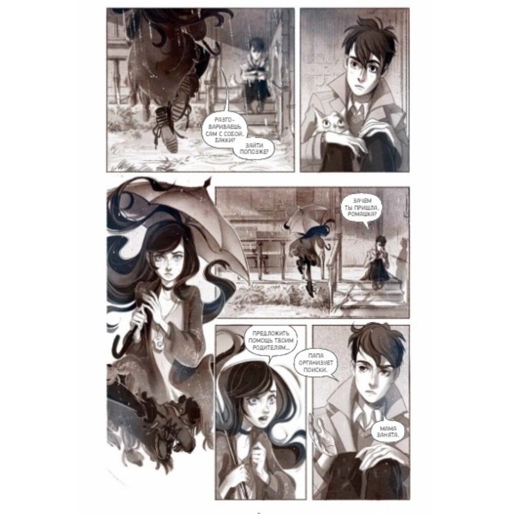 Превосходная книга во всех отношениях! Интересная, атмосферная, волшебная история для осеннего дождливого вечера, с чашкой чая в руках. Две очень талантливые женщины создали прекрасную книгу, от которой не можешь оторваться. Рисунок достоин особого внимания. Благодаря свету и тени, складывается ощущение, что это раскадровка мультфильма, потрясающие цвета и атмосфера. Давно не держала в руках такой книги. Спасибо издательству МИФ за их прекрасные издания.