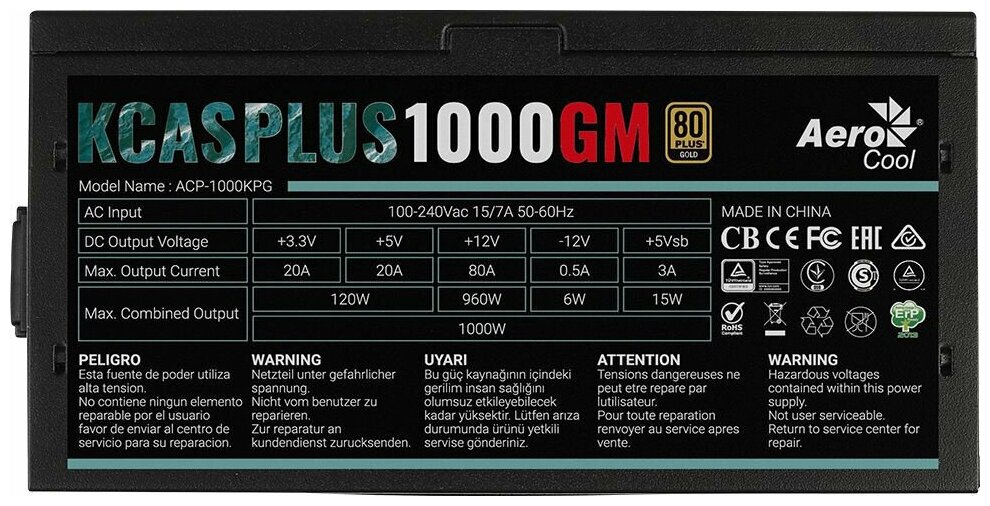 На сегодняшний день товар «Блок питания AEROCOOL KCAS PLUS 1000GM 1000Вт 140мм черный retail [acpg-kpk0fec.11]» можно купить с кешбеком в 1 магазине: Яндекс.Маркет