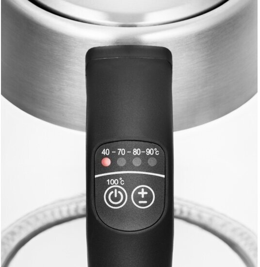 Чайник оснащён терморегулятором и может нагреть воду от 40 до 100 °С, что очень удобно при заваривании различных сортов чая, приготовлении кофе и подогрева детского питания. Чайник также оснащён функцией поддержания температуры до 2 часов.