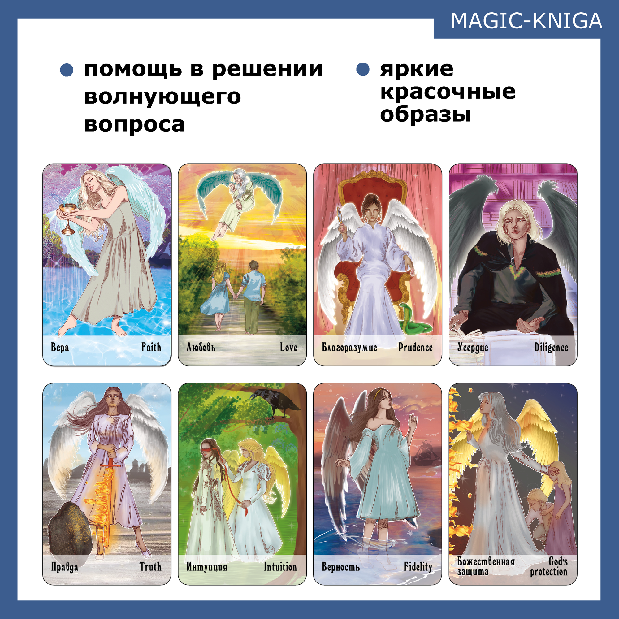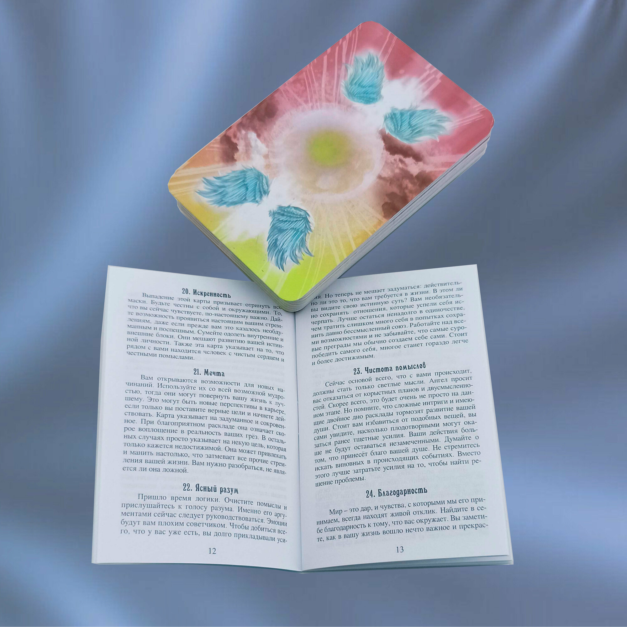 С древних времен ангельские силы служат верой и правдой человечеству и миру. Ангелы - особые существа, несущие в мир радость, любовь, благословение, надежду, красоту силу и могущество. Хотите, чтобы ангелы стали вашими верными союзниками? Ангельские карты помогут вам наладить с ними контакт! Что такое Ангельские карты? Это яркие красочные карточки с особенным посланием от Высших сил, от ангелов. И выбрав ту или иную карту, вы интуитивно наладите связь со своей душой, своими духовными наставниками, а это значит, что вы получите помощь, сигнал к действию, надежду и направление в решении волнующего вас вопроса.