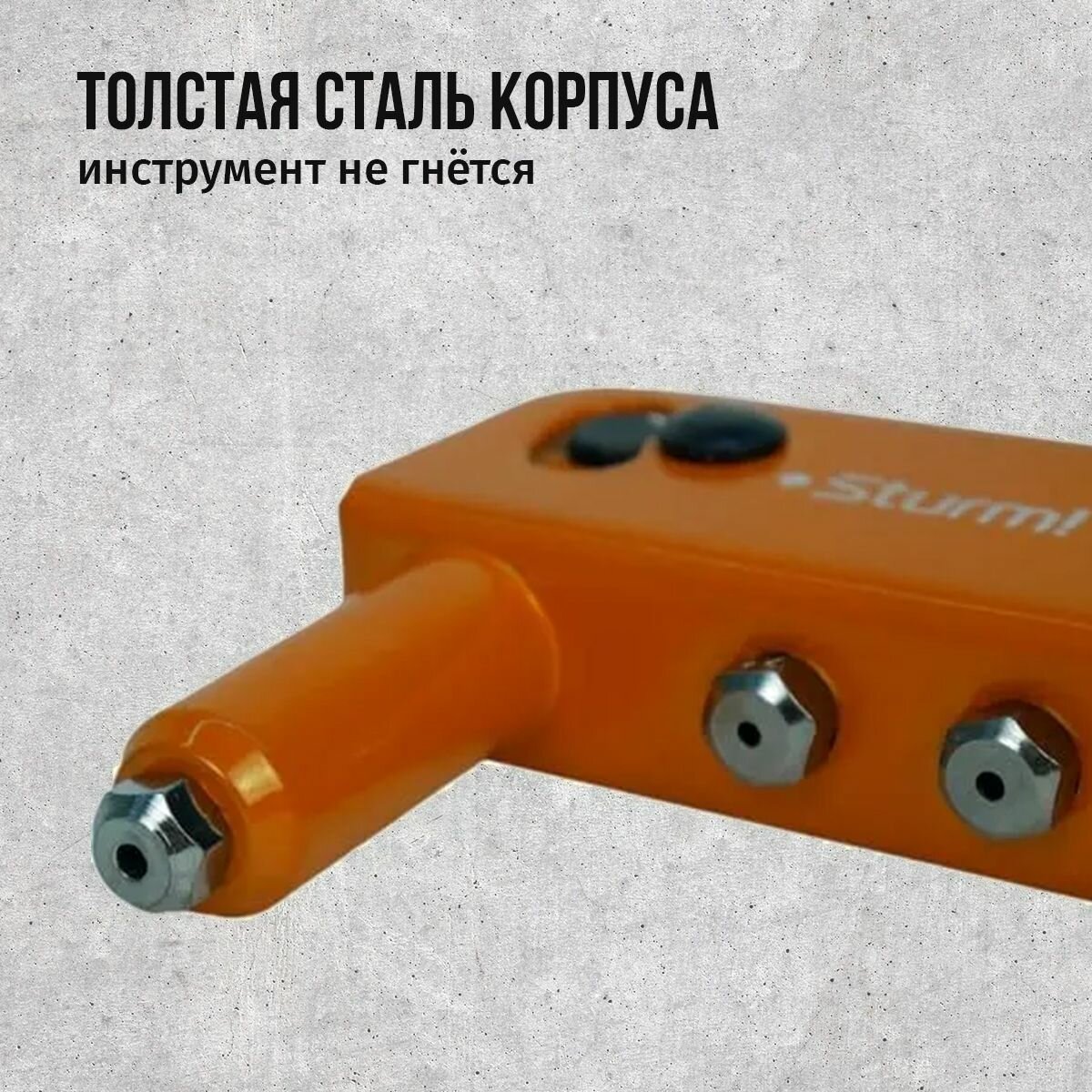 Инструмент, предназначенный для монтажа вытяжных заклепок для соединения плоских листовых деталей (не только стальных листов, но и фанеры и т.д.).