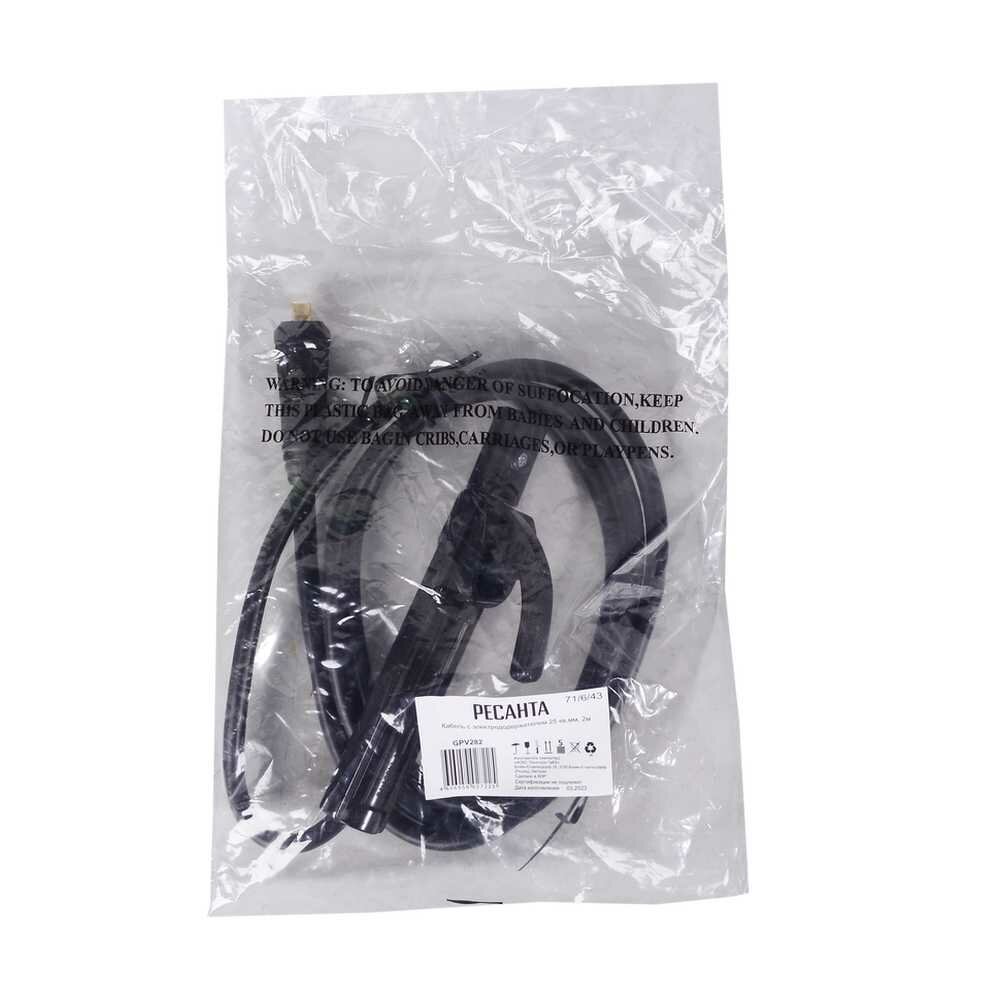 Кабель с электрододержателем Ресанта предназначен для фиксации электрода и подвода к нему тока во время сварочных работ методом MMA. Электропроводящие части изолированы от случайного прикосновения. Длина - 2 м. Сечение кабеля - 25 мм2. Материал - медь.
