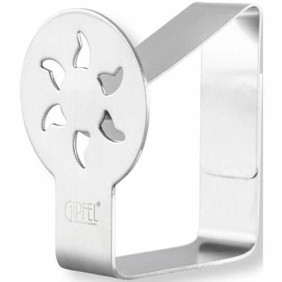 Набор зажимов для скатертей GIPFEL 6068. В наборе 4 зажима. Размер 5 см. Они прочно фиксируют скатерть по периметру стола. Сделаны из нержавеющей стали. На верхней стороне резной рисунок в виде солнышка и фирменный логотип GIPFEL.