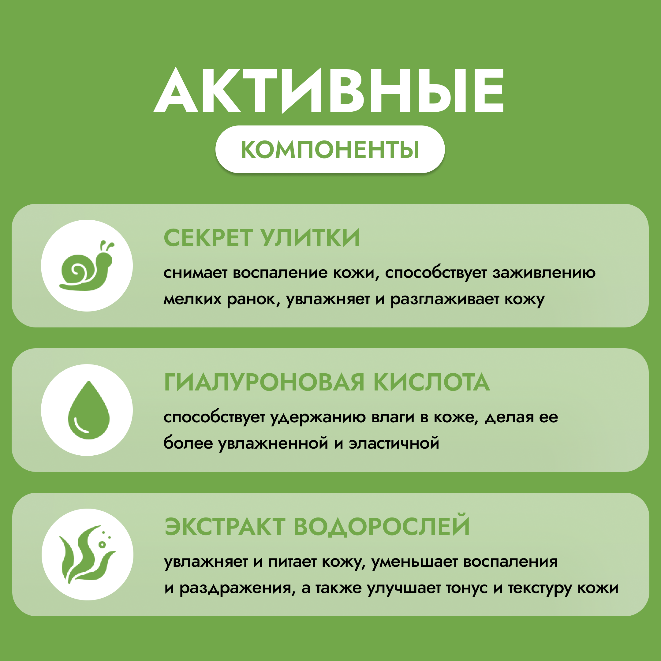 Одна из древнейших обитательниц планеты, улитка, выработала за миллионы лет эволюции уникальные способности по регенерации живых тканей. Используя в уходе за кожей выделяемые улитками вещества, мы получаем комплексную защиту от преждевременного старения кожи и действие, восстанавливающее поврежденные и рубцовые ткани. Дополненная системой активных природных компонентов, Сыворотка препятствует появлению раздражений и акне, улучшает эластичность кожи, уменьшает глубину морщин, увлажняет и освежает кожу. Улучшает цвет и структуру.