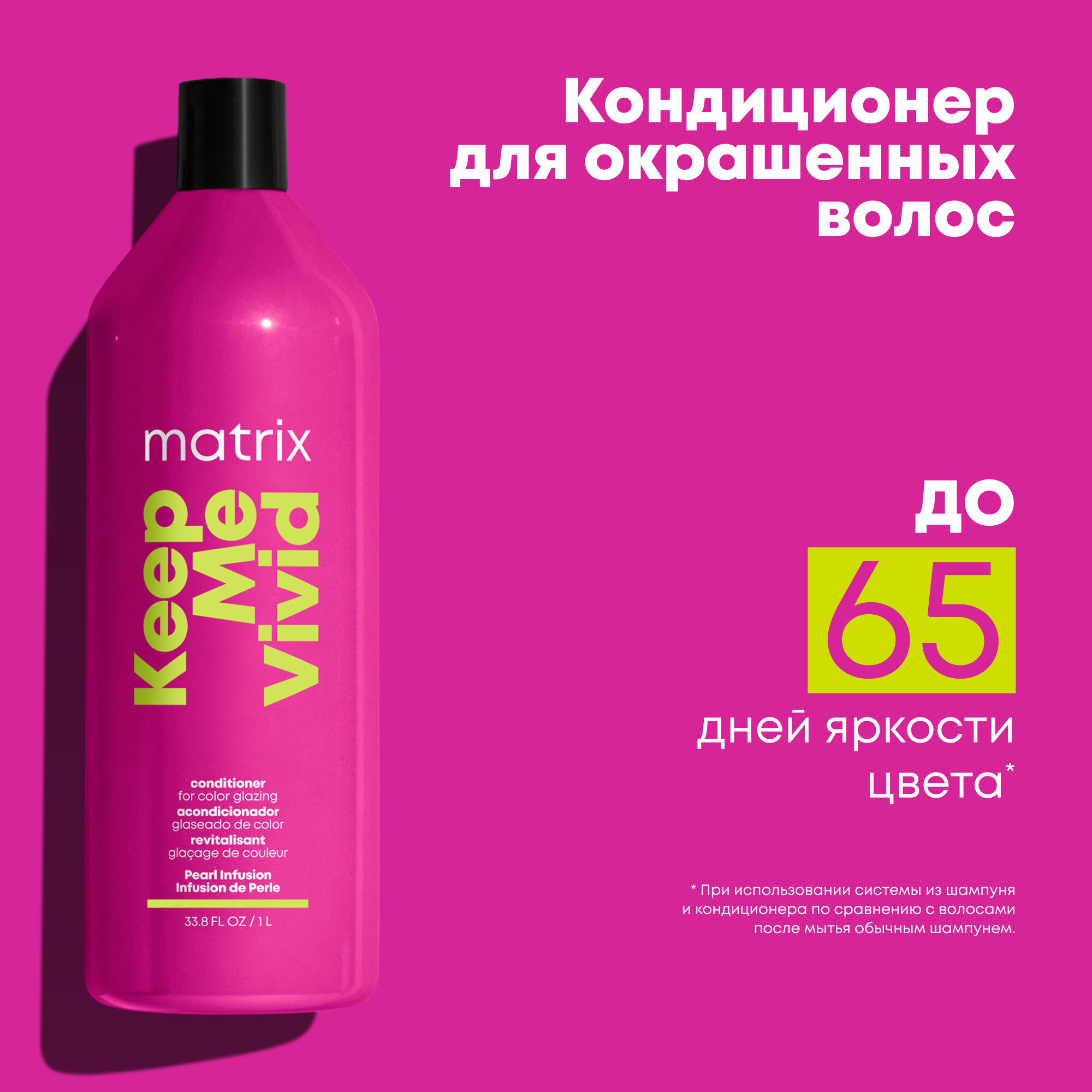 Кондиицонер Total Results Keep Me Vivid надолго сохраняет насыщенный и многогранный блеск и интенсивно питает окрашенные волосы. Подходит для ярких и легко вымывающихся пастельных оттенков. А при использовании системы из шампуня и кондиционера первозданный цвет сохраняется до 65 дней. Уникальный аромат зеленой гортензии, кокосового крема и молочка кешью оставляет приятный и ненавязчивый шлейф.