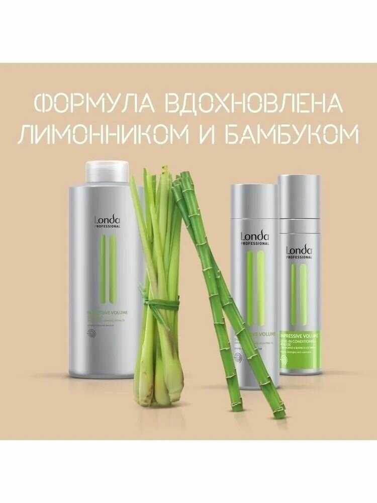 Шампунь для придания объема Impressive Volume разработанный специально для тонких волос, придаст вашим волосам новую силу, энергию и дополнительный объём. Благодаря уникальной формуле, основанной на принципе микрокапсулы, во время втирания шампуня в кожу головы и волосы происходит активизация специальных лечебных элементов. Среди них специальные средства для защиты, натуральный экстракт бамбука и лимонника, которые «блокируют» и сохраняют влагу внутри тонких волос. Шампунь значительно увеличивает объём волос и делает их пышными.
