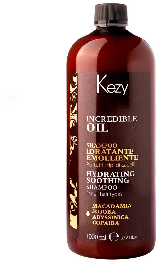 | Полное описание | Шампунь содержит четыре драгоценных масла, способные мгновенно впитываться и улучшать состояние прядей. Масло макадамии убирает сухость, защищает от внешних нагрузок, позволяет навсегда забыть о ломких и секущихся кончиках, оказывает антиоксидантное воздействие, что особенно актуально при работе с длинными волосами. Масло карите (жожоба) насыщает витаминами, уплотняет каждый волосок изнутри, а также разглаживает кутикулу и приносит локонам завораживающий блеск. Масло копаиба оздоравливает кожные покровы головы, помогает решить проблему перхоти, унять дискомфорт. После использования шампуня Kezy Incredible Oil волосы не только становятся качественно лучше, но и легче принимают форму укладки, расчесываются, приобретают очаровательную пышность и гладкость |