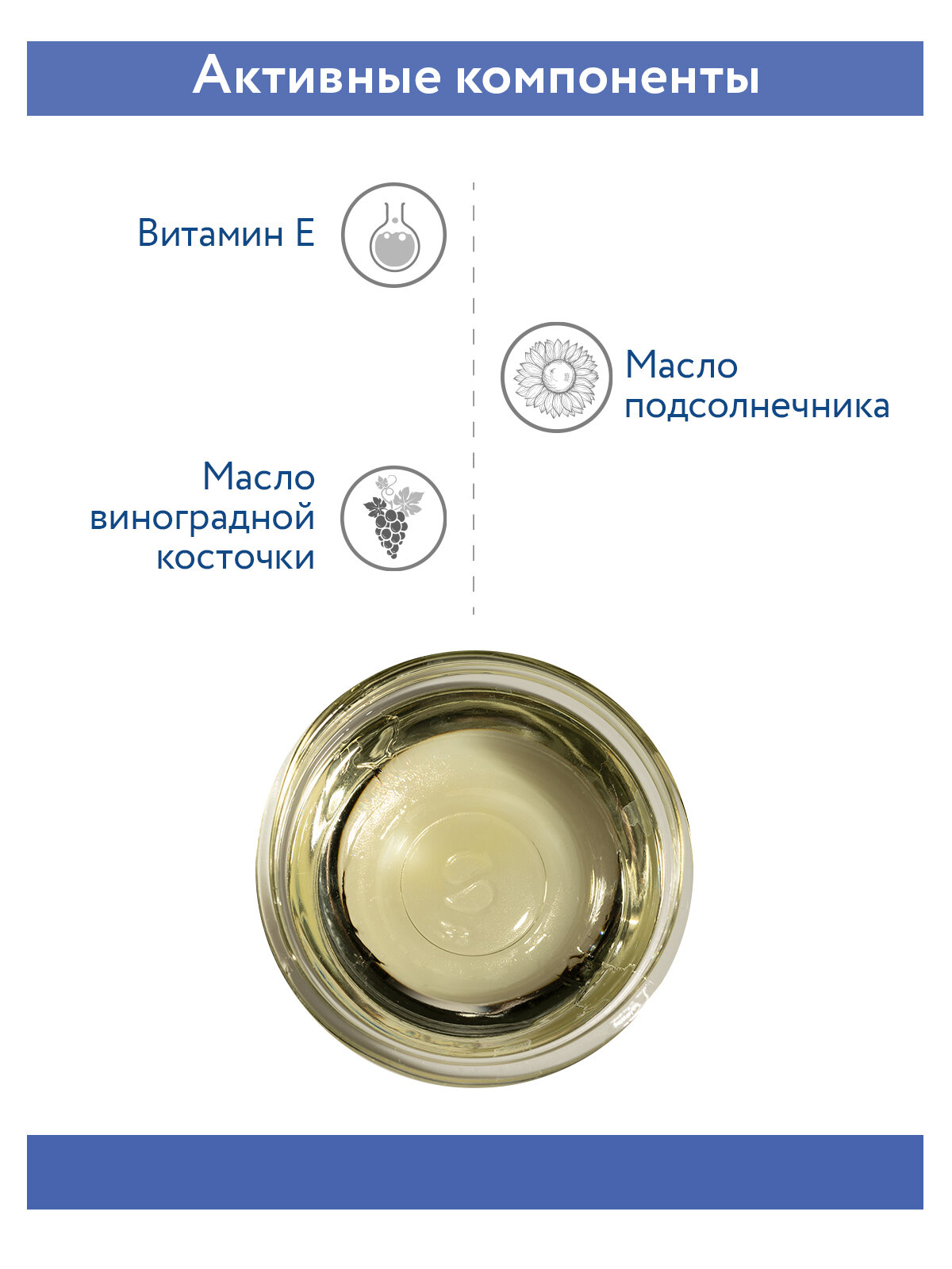 | Активные компоненты | Масло подсолнечника, масло виноградной косточки, витамин Е. |