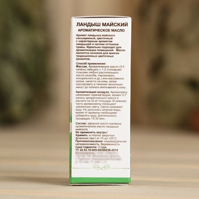 Аромат ландыша майского насыщенный, цветочный с характерным ароматом ландышей и легким оттенком травы. Идеально подходит для ароматизации помещений Масло является основой для многих традиционных цветочных ароматов. Хорошо сочетается с запахом розы, иланг-иланга, герани, розмарина, жасмина.