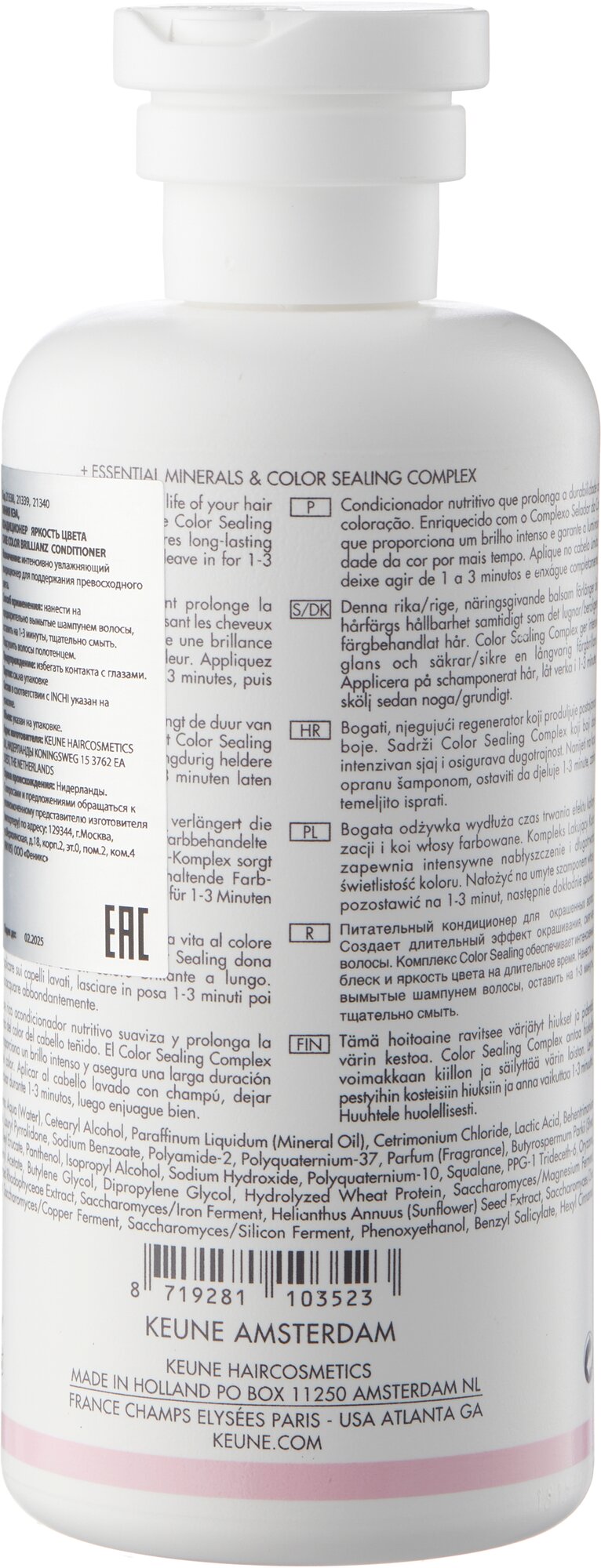 Кондиционер Keune Care Color Brillianz специально разработан для обладательниц окрашенных волос. Инновационная активная формула восстанавливает баланс влаги в волосах и интенсивно питает. Облегчает процесс расчесывания волос и защищает их от воздействия негативных факторов окружающей среды. Кондиционер сохраняет цвет окрашенных волос на длительное время и препятствует вымыванию. После применения волосы приобретают естественный блеск и гладкость.
