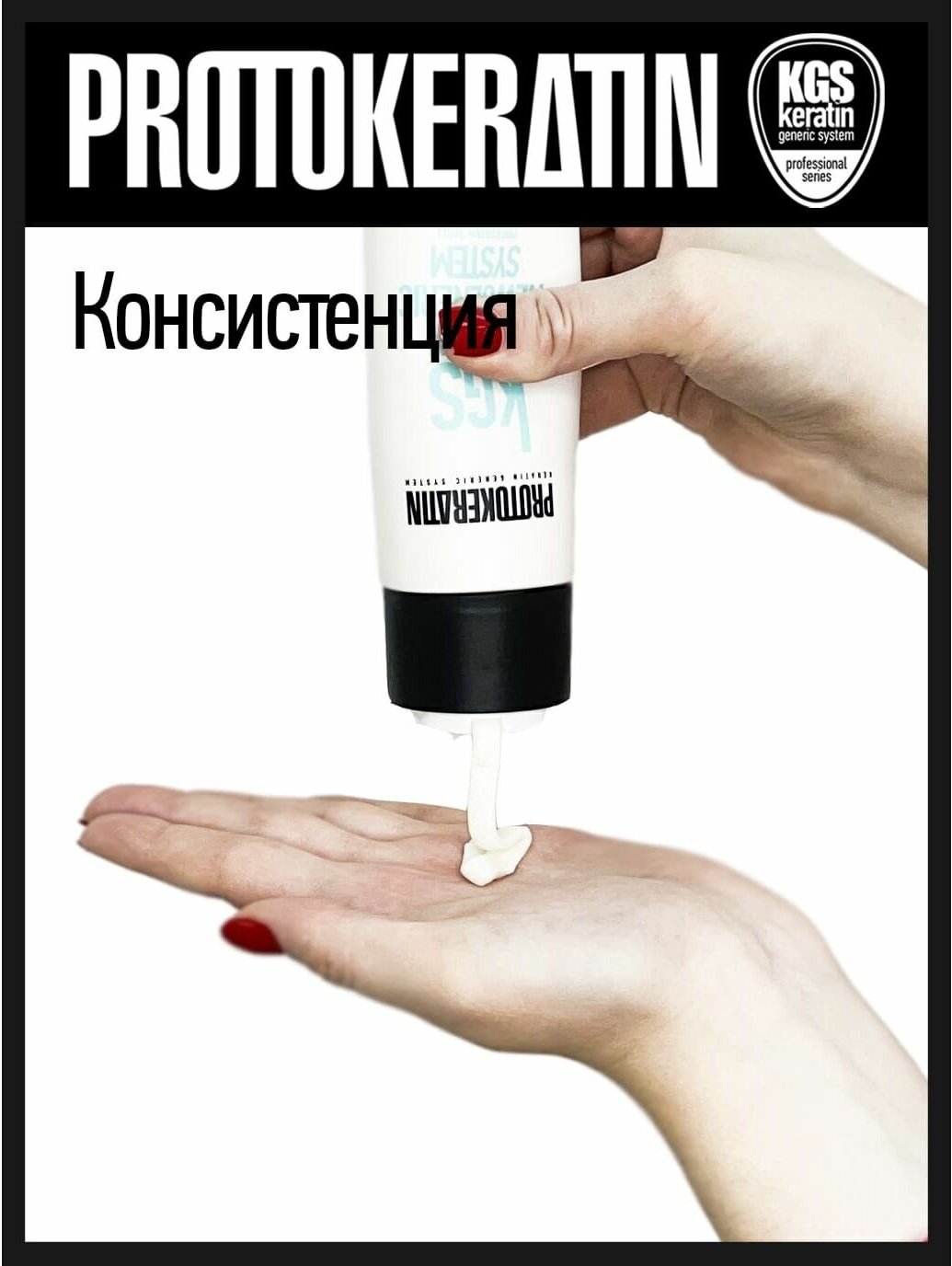 Гидролизованный кератин, гидролизованные протеины ржи, овса, пшеницы, масло оливы, масло кокоса, масло макадамии, масло ши, масло семян брокколи, алоэ вера гель, пантенол, молочная кислота.
