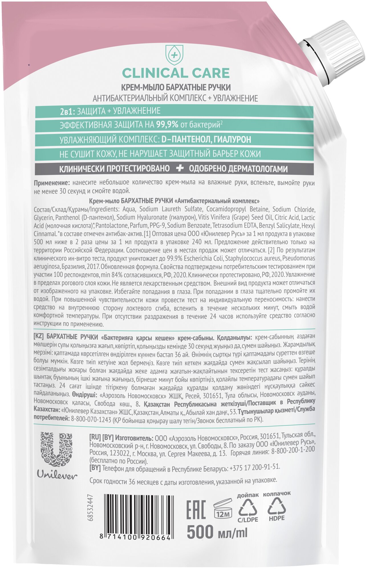 На сегодняшний день товар «Крем-мыло Бархатные ручки "Антибактериальный комплекс" 240 мл ООО Юнилевер Русь (1168263)» можно купить с кешбеком в 1 магазине: Яндекс.Маркет