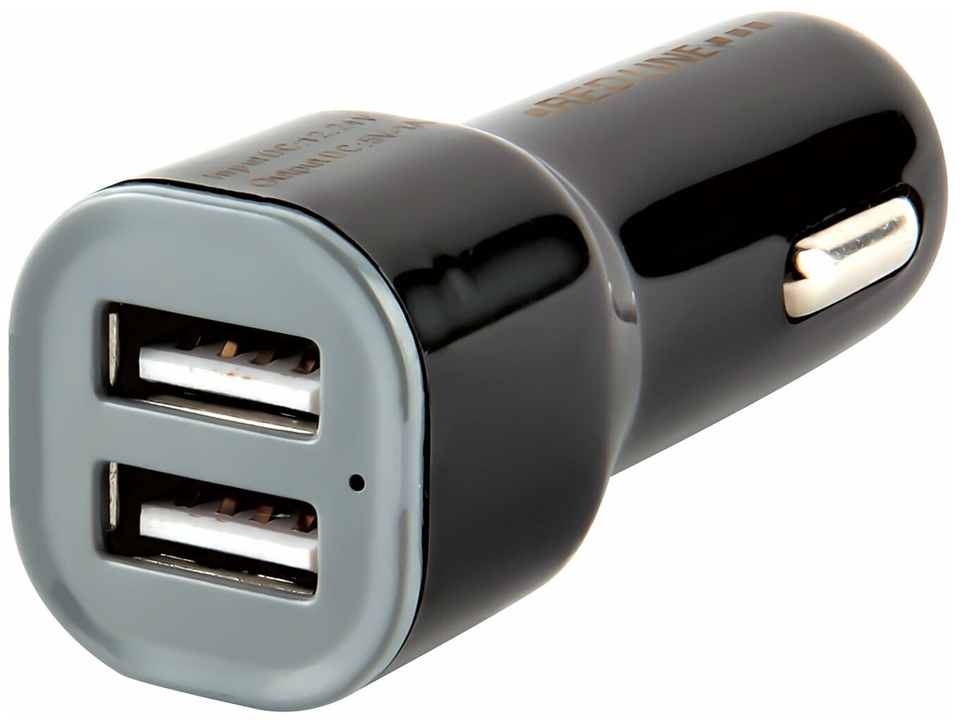 Автомобильное зарядное устройство Red Line Lite оснащено двумя портами стандарта USB, на которые одновременно подается ток силой до 1 ампера и напряжением 5 вольт.
