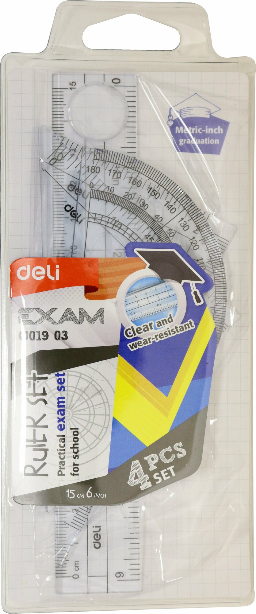 Набор линеек Deli Exam пластик голубой прозрачный компл.:лин.15см./треуг.2шт./трансп. 24 шт./кор. EG01903