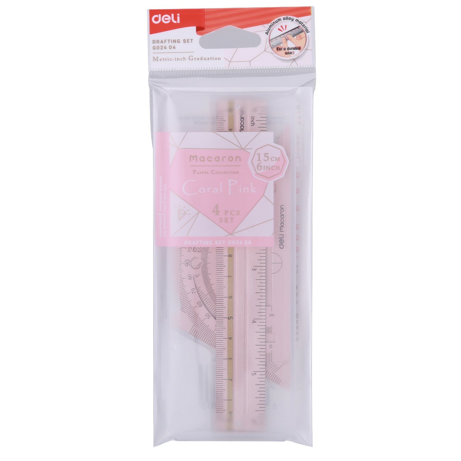 Набор линеек Deli Macaron алюминий ассорти компл.:лин.15см./треуг.2шт./трансп. 24 шт./кор. EG02404