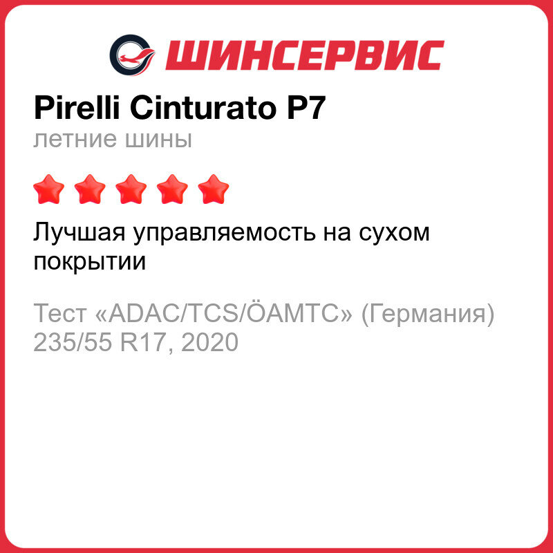 Pirelli Cinturato P7, как и вся линейка Cinturato, является экологичной шиной, существенно снижает расход топлива и выброс вредных веществ в атмосферу. Pirelli Cinturato P7 гарантирует высокий уровень безопасности на любом дорожном покрытии и при любой погоде. Cinturato P7 обладают повышенной износостойкостью, что обеспечивает безопасность и повышенный комфорт при движении. Обладает технологией защиты от проколов.