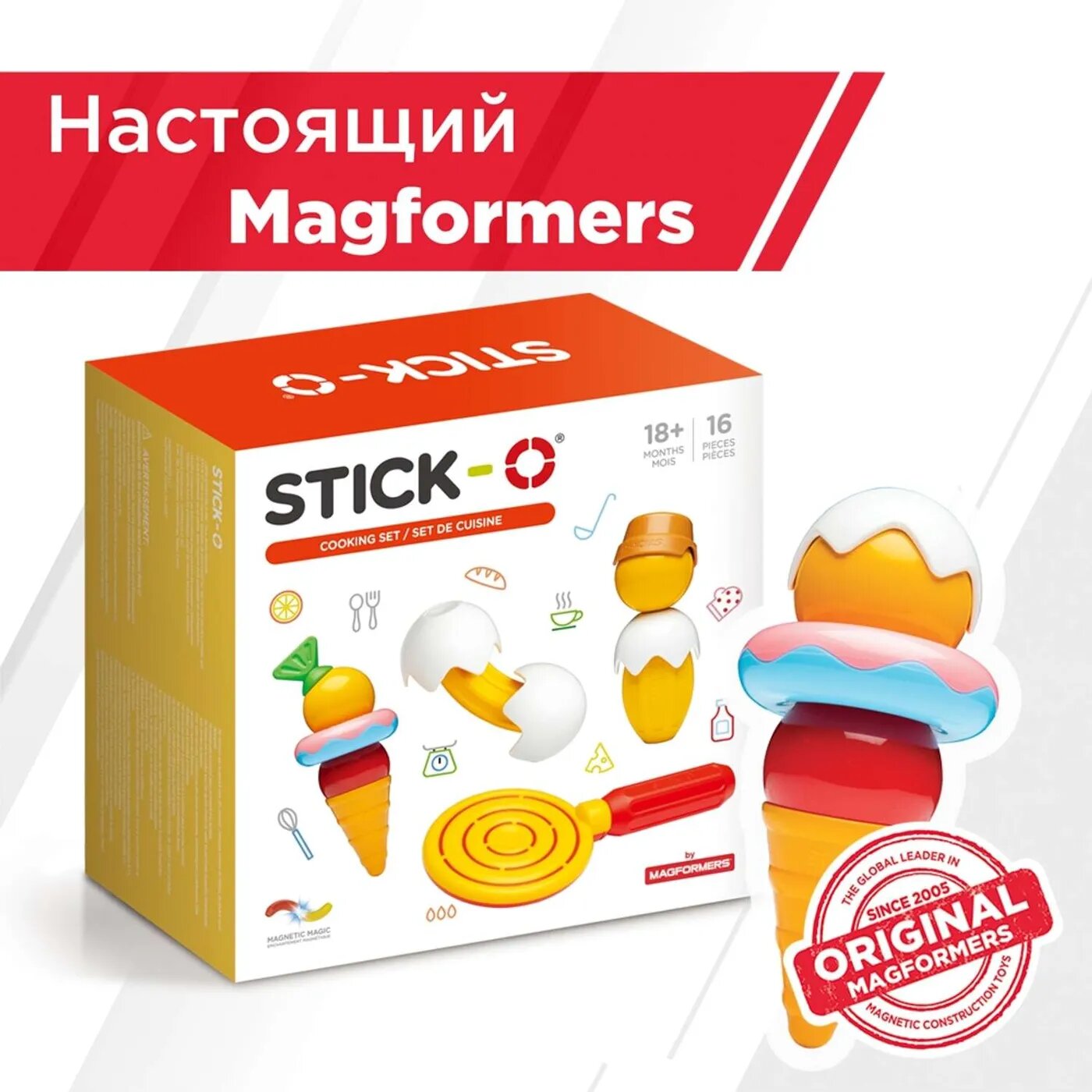 STICKO - Феноменальный магнитный конструктор из Кореи. От создателей Magformers. Рекомендован для малышей от 18 месяцев и имеет сертификат 0+. Большая редкость для конструкторов с магнитами!