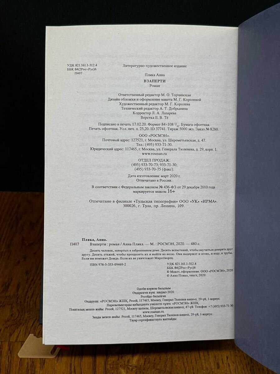Книга: Взаперти (Анна Пляка); РОСМЭН, 2020