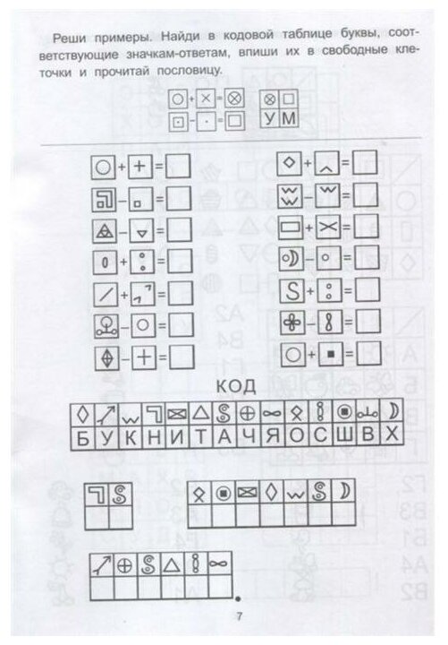 "Школа маленьких шпионов" - это серия книг, которая поможет детям освоить коды и шифры, научит решать логические задачки и разгадывать "секретные послания". В книге множество заданий на развитие устойчивого зрительного внимания, что, в свою очередь, помогает выработке такого навыка, как усидчивость. С помощью "шифрованных" упражнений ребёнок потренирует мелкую моторику, закрепит знание счёта, букв и геометрических фигур. Большое внимание уделено развитию мышления и речи: "расшифрованные" тексты пополнят словарный запас малыша, познакомят с сокровищами русского языка - пословицами. Задания даются в виде кратких пояснений, а в некоторых случаях - с образцами выполнения в верхней части страницы. Желаем вам успешных уроков в "Школе маленьких шпионов"!