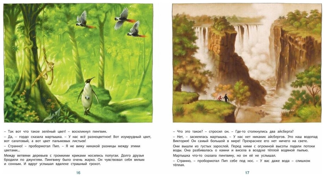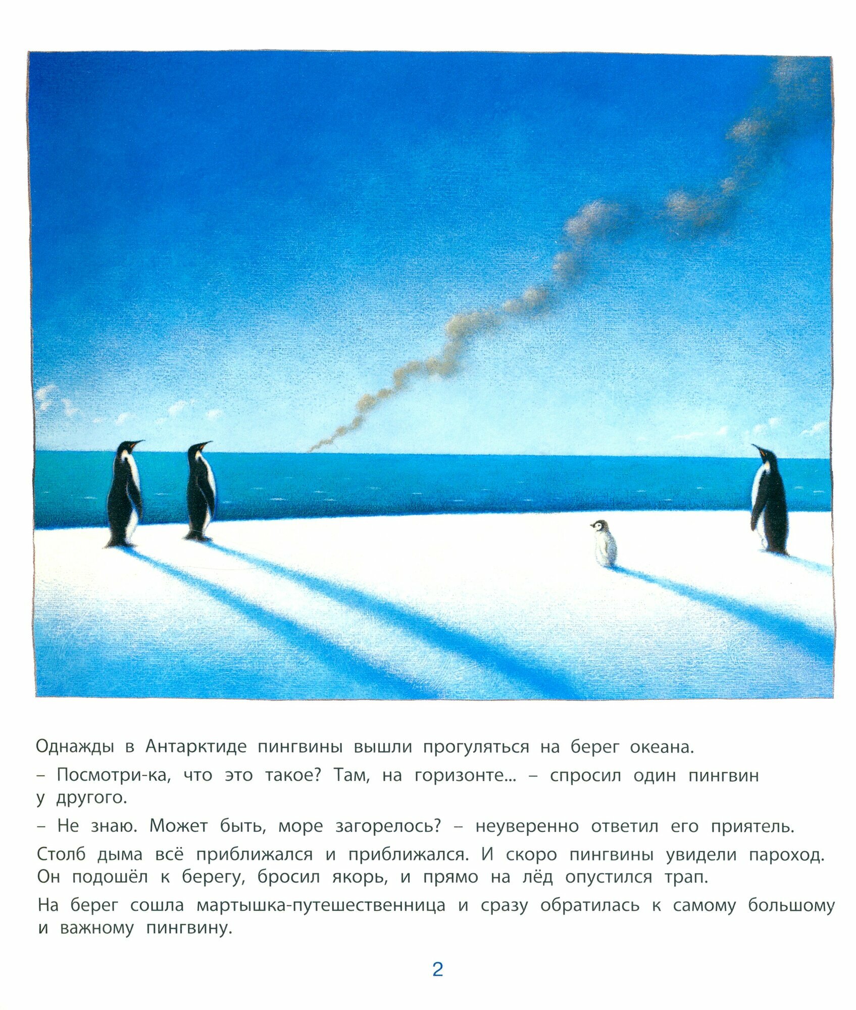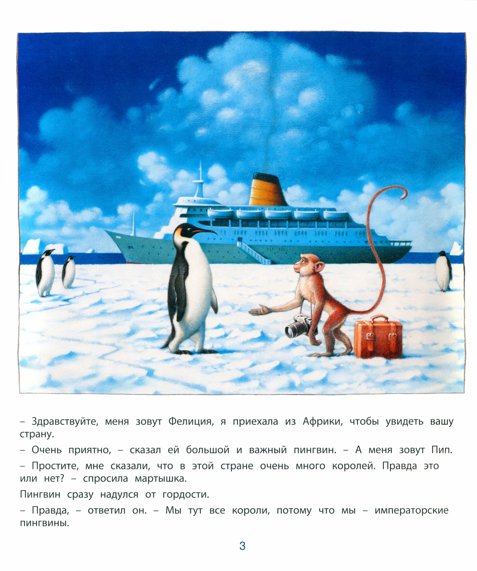 Весёлая и красочная книжка рассказывает о том, как подружились пингвин и мартышка. Дружить им непросто: пингвин любит холод и белые льды, а мартышка – жару и зелёные джунгли. Всё у них дома устроено по-разному, и поэтому приятели не перестают удивлять друг друга. История этой необычной дружбы поможет маленькому читателю понять, что родной дом – самое замечательное место на земле, и что мир, в котором мы живем, так многообразен и в нем так много интересного!