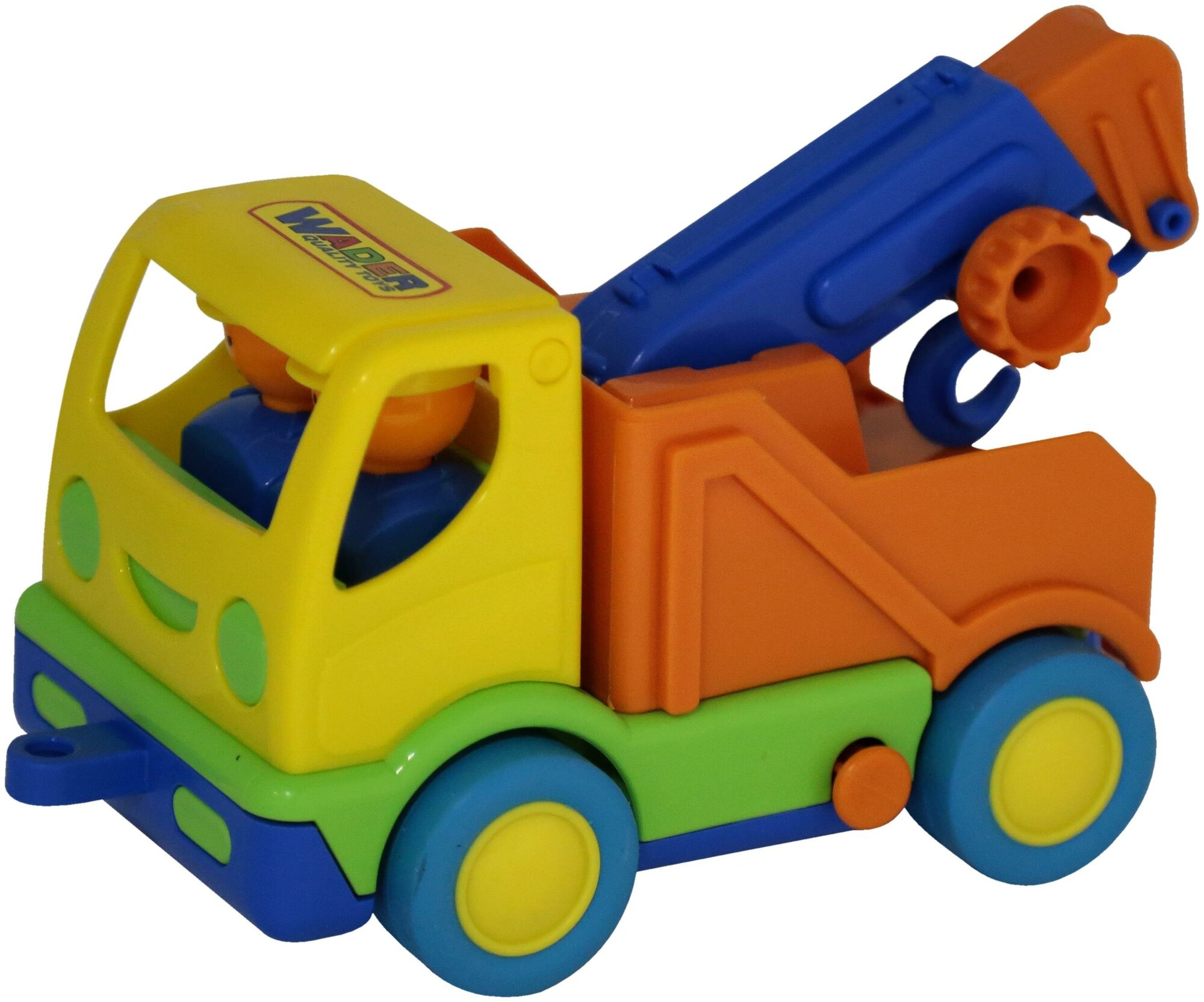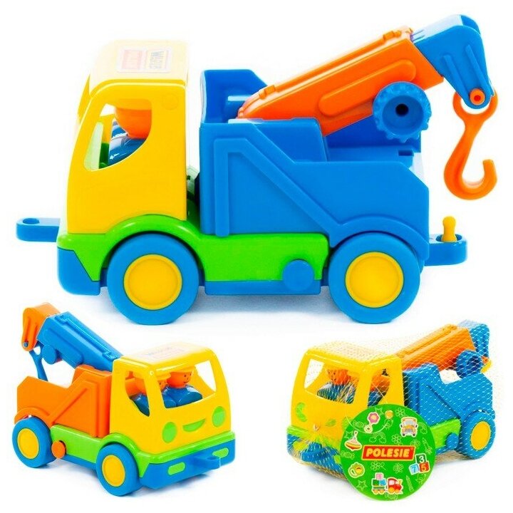 Игрушка Полесье Автомобиль-эвакуатор Мой первый грузовик идеально подходит для того чтобы стать первой машинки малыша. Изготовлена из высококачественной пластмассы, крепкой и эластичной. Форма машинки не содержит острых краев. Колеса мягкие, резиновые. Поэтому машинка идеально подходит для малышей и гарантирует безопасное использование во время игры, исключающее самотравмирование ребенка. В кабине размещаются 2 фигурки, которые можно вынимать через открывающуюся крышу. Сзади раздвижной кран, за который можно цеплять другие машинки. Пользуется большим спросом для игры дома, а так же для оснащения детских садов и других дошкольных учреждений. Внимание! Товар представлен в ассортименте. Укажите в комментарии к заказу ваши пожелания, и мы постараемся их учесть (при наличии определенного цвета или вида на складе). В остальных случаях вариант в поставке не гарантирован! Для выбора конкретного товара рекомендуем посетить наш розничный магазин.