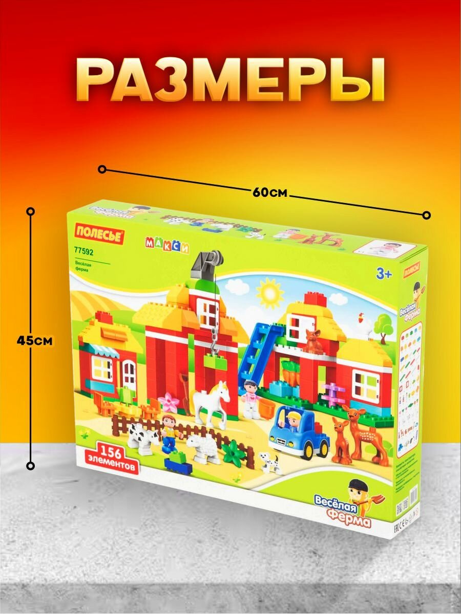Серия конструкторов "Полесье" Макси разработана специально для детей. Привлекательная форма элементов, яркие цвета и простая геометрия способствуют развитию практических навыков конструирования и творчества, тем самым постепенно развивая воображение. Вы заметите, как в процессе игры с конструктором у вашего ребёнка будет развиваться фантазия.Конструктор устойчив к износу и воздействию высоких температур. Элементы имеют яркий и насыщенный цвет. Детали не имеют острых углов и безопасны для игры.Конструктор подходит для одиночной и коллективной игры.Элементы конструктора:- Обучают основам моделирования и конструирования.- Тренируют интеллектуальные возможности: усидчивость, внимательность и целеустремлённость.- Развивают воображение и творческие способности, пространственное и ассоциативное мышление.Конструктор "Макси" - "Весёлая ферма" познакомит малыша с увлекательным миром животных и ведением домашнего хозяйства, позволяя придумывать различные игровые сценарии. В набор входит 156 элементов конструктора.