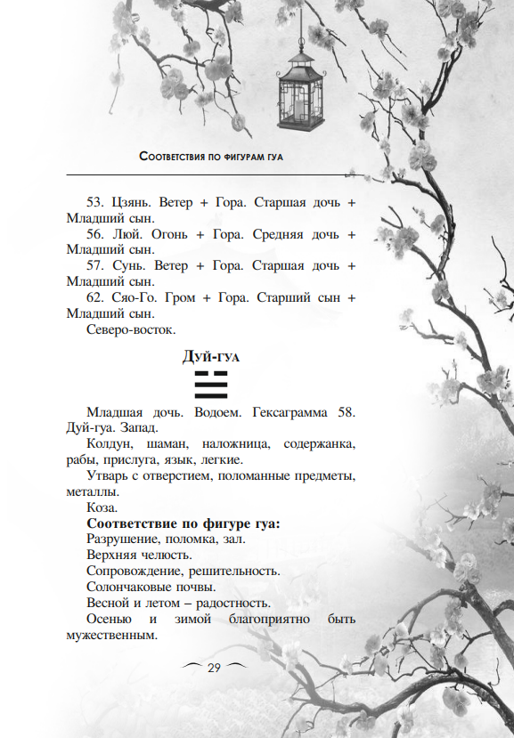 И цзин, или И-Цзин, – наиболее почитаемые тексты древнейшей китайской традиции. Это схемы и интерпретации, в которые входят размышления и домыслы текста «Книги Перемен», имеющие глубочайший, до сих пор не вполне ясный философский и иные смыслы. Миллионы людей ежедневно обращаются к ней с вопросами, на которые Книга отвечает также вопросами. Она заставляет думать. «Книга Перемен» стоит на первом месте среди классических книг конфуцианства и в обзорах китайской литературы. В предыдущих работах Веры Скляровой по исследованию карточного канона И-Цзинь предметно описана вся система знаков – гуа и даны основные правила прорицания на картах Канона, новое видение, новые техники и методики. Даны многочисленные схемы раскладов. В этой же книге представлен новый удивительный материал. Изучение многочисленной древнейшей литературы дало автору повод раскрыть еще один аспект возможного прочтения Канона и применения этого аспекта в практических целях. Изучение довольно предметно «Антологии древнекитайской эзотерики» и работы этого цикла «Числа превращений Дикой Сливы Мэй-Хуа» позволило опосредованно установить связи всех гуа Канона со всеми домами гороскопа Восточного Зодиака, и это открывает новые, практически неограниченные возможности практического применения системы. Стык двух практик – лучше, нежели одна наука, и многие работы Веры Скляровой теперь эту тенденцию поддерживают. Не осталось в стороне и исследование карточного Канона вкупе с Домами гороскопа. Эта работа дает предметное описание трех уровней практик гадания, трех Цзюань. Среди множества аспектов можно выделить необходимые данные для классификации и градации данных по нужным Домам гороскопа восточного Зодиака, установить связи гуа с животными, с понятиями географическими и с множеством иных нужных данных.
