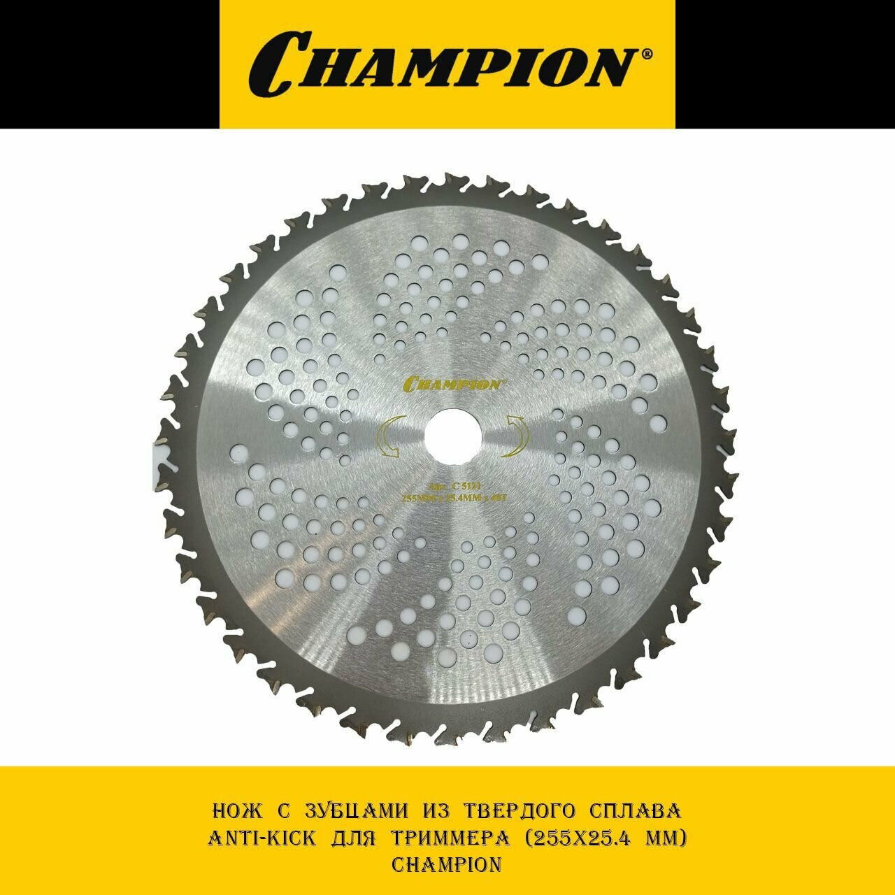 Нож с зубцами из твердого сплава Champion Anti-kick . Для жесткой травы, кустарника и тонких стволов деревьев. Для триммеров с объемом двигателя от 30 см3. Количество зубьев - 40. Внешний диаметр 255мм. Диаметр посадочного отверстия 25,4мм.