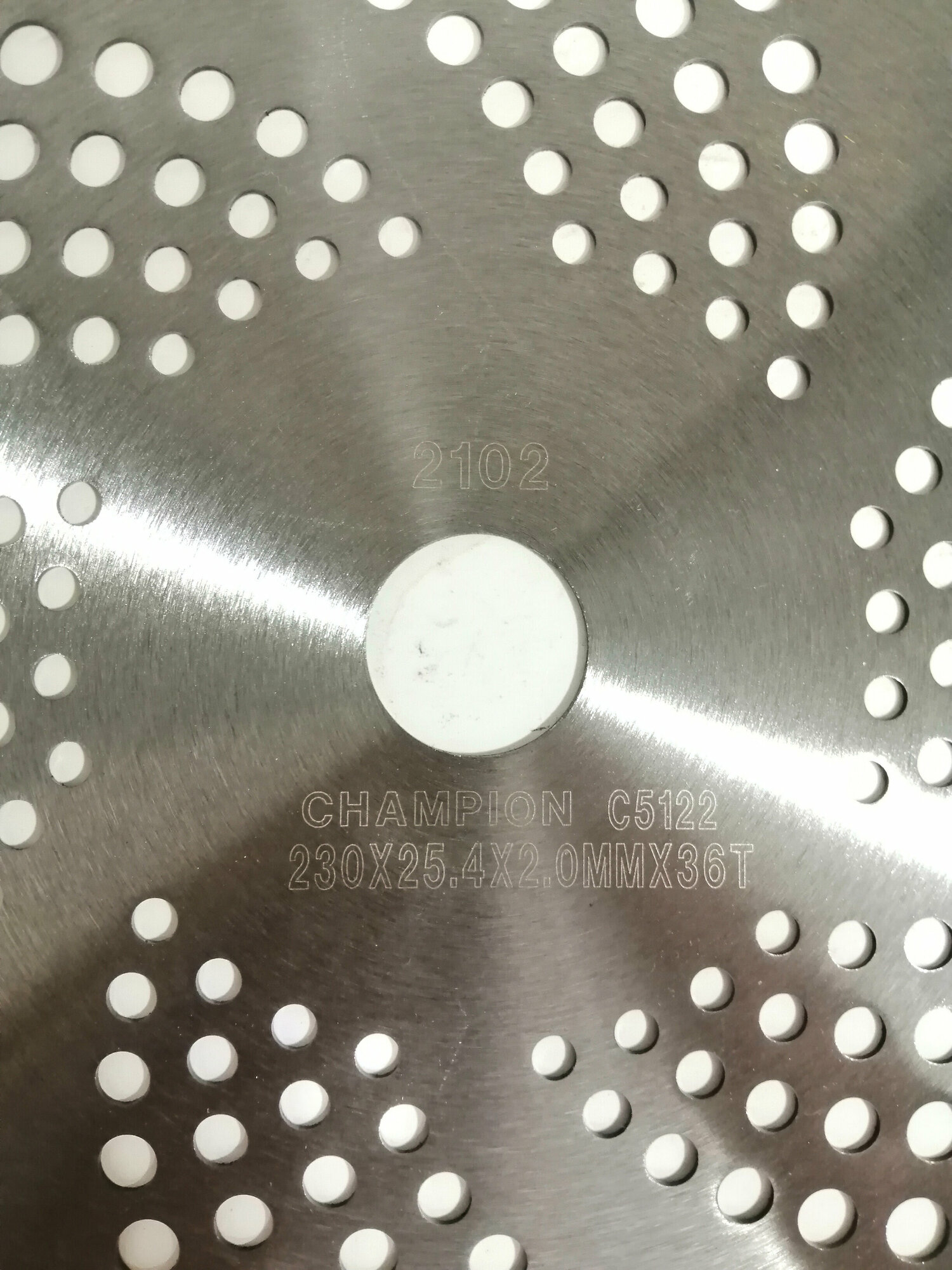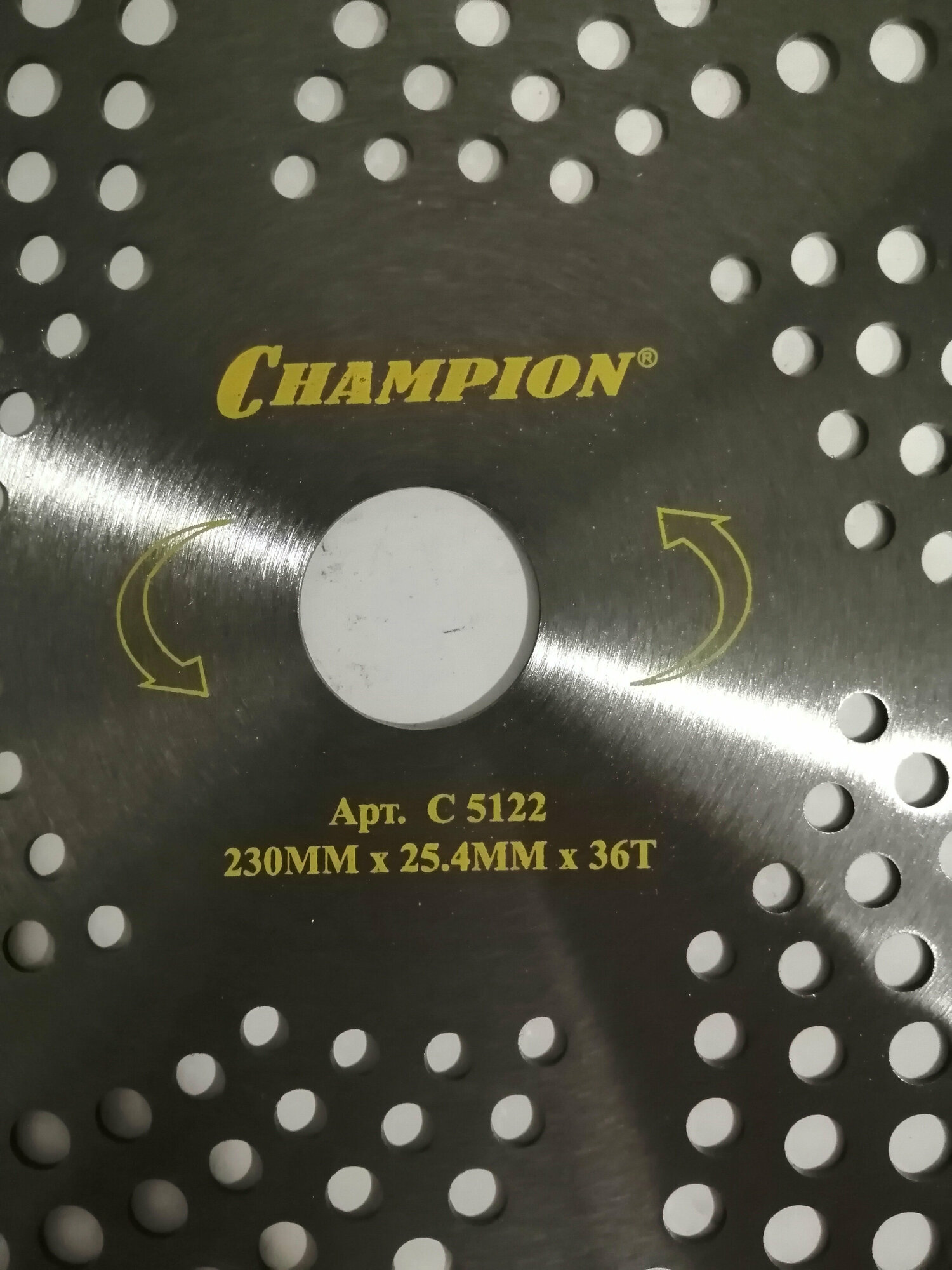 Нож с зубцами из твердого сплава Champion Anti-kick . Для жесткой травы, кустарника и тонких стволов деревьев. Для триммеров с объемом двигателя от 30 см3. Количество зубьев - 36. Внешний диаметр 230мм. Диаметр посадочного отверстия 25,4мм.