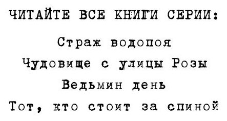 Тот, кто стоит за спиной Считаешь, бука - страшилка для маленьких? Несмотря на свое безобидное прозвище он - настоящее чудовище! Кошмар, страх, паника. Не существует слова, чтобы описать те ощущения, которые испытываешь, столкнувшись с ним в реальности. И рациональные аргументы не помогают. Оружие не помогает тоже. Обычно бука стоит у тебя за спиной. Но не вздумай оглянуться: если ты его увидишь - это конец! Вендиго. Демон леса Давно уже Монстр из пригорода, Чудовище из мрака, просто обычный пес, наверное, последний на Земле. Он путешествует среди руин человеческих обиталищ, пытаясь найти пропитание. Людей осталось слишком мало, зато тварей становится все больше и больше. Они сильны, они опасны. и они наступают.