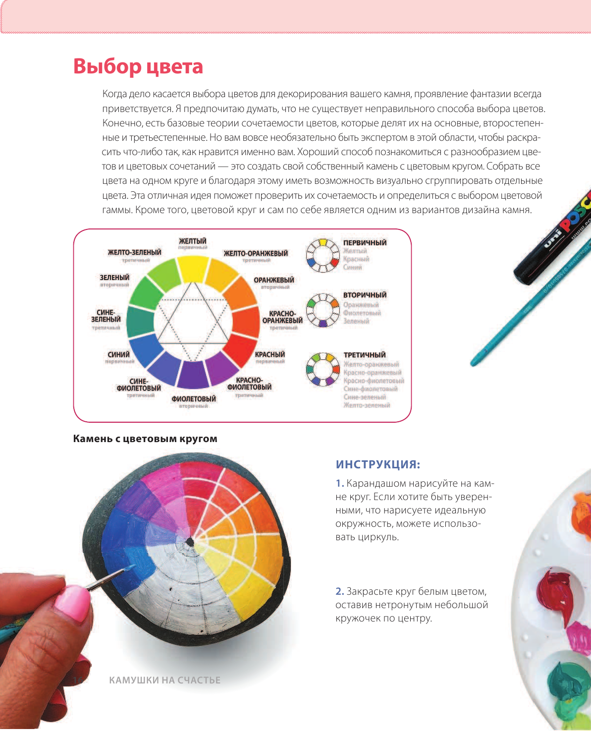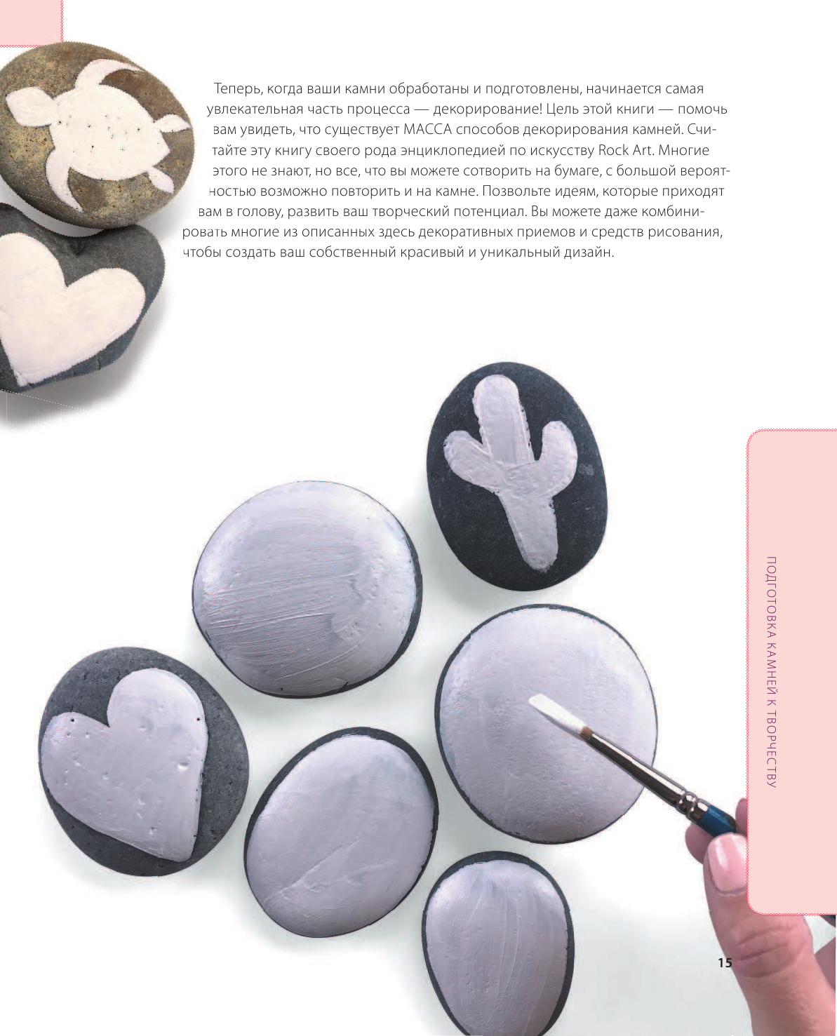 Внутри просто море идей, на любые возможности! Можно раскрашивать чем угодно, красками, карандашами, маркерами, фломастерами, мелками, даже лаком для ногтей, делать декупаж, даже не надо ничего особенно уметь, есть идеи и для тех, кто неплохо рисует, а есть детские или для неумех. Разные стили, разные оттенки! Глаза разбегаются! Есть отдельный раздел для занятий с детьми, как не только украшать камушки, но и играть ими или использовать в обучении. Окончательно покорила меня уже, оказывается, распространенная в мире идея прятать раскрашенные камушки. А тот, кто их найдет, выкладывает в соцсети! Маленькие яркие улыбки для незнакомцев. В наше время такие добрые флешмобы очень ценны! В общем, я совершенно счастлива и уже заказала камушки для декора комнатных растений. Кстати, стоят копейки. Книгу рекомендую абсолютно всем, а особенно родителям!