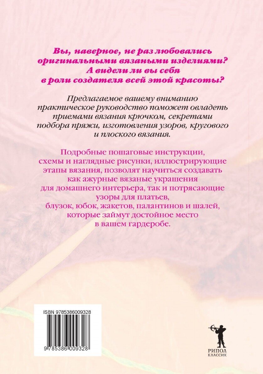 Эта книга поможет вам научиться вязать крючком. В ней даны рекомендации по использованию материалов и инструментов, представлены образцы узоров, а также схемы и описания модной и практичной одежды, скатертей, салфеток и игрушек.
