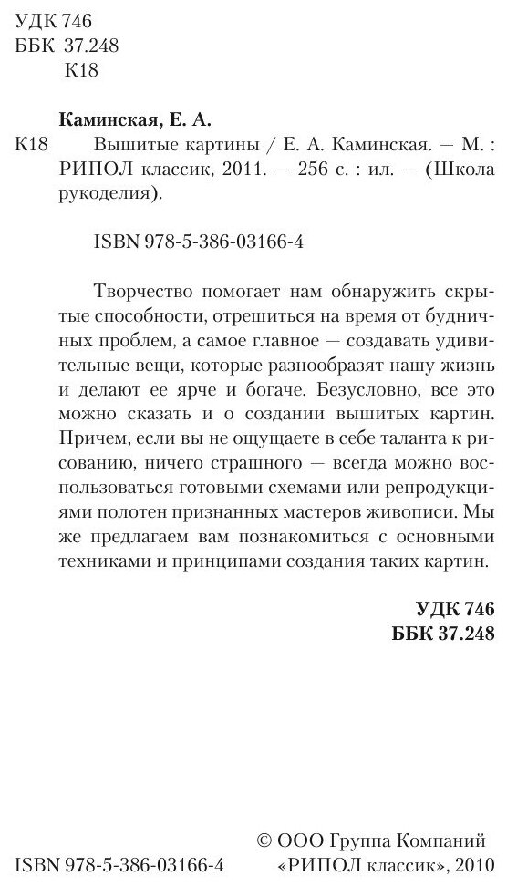 Книга: Вышитые картины (Каминская Елена Анатольевна); Рипол-Классик, 2011