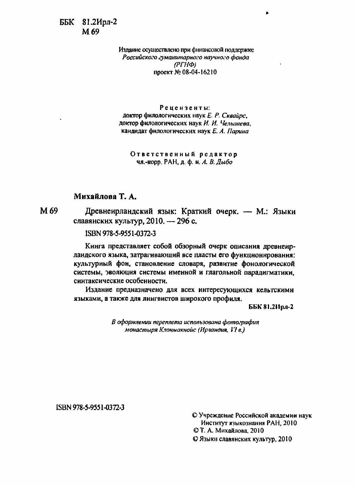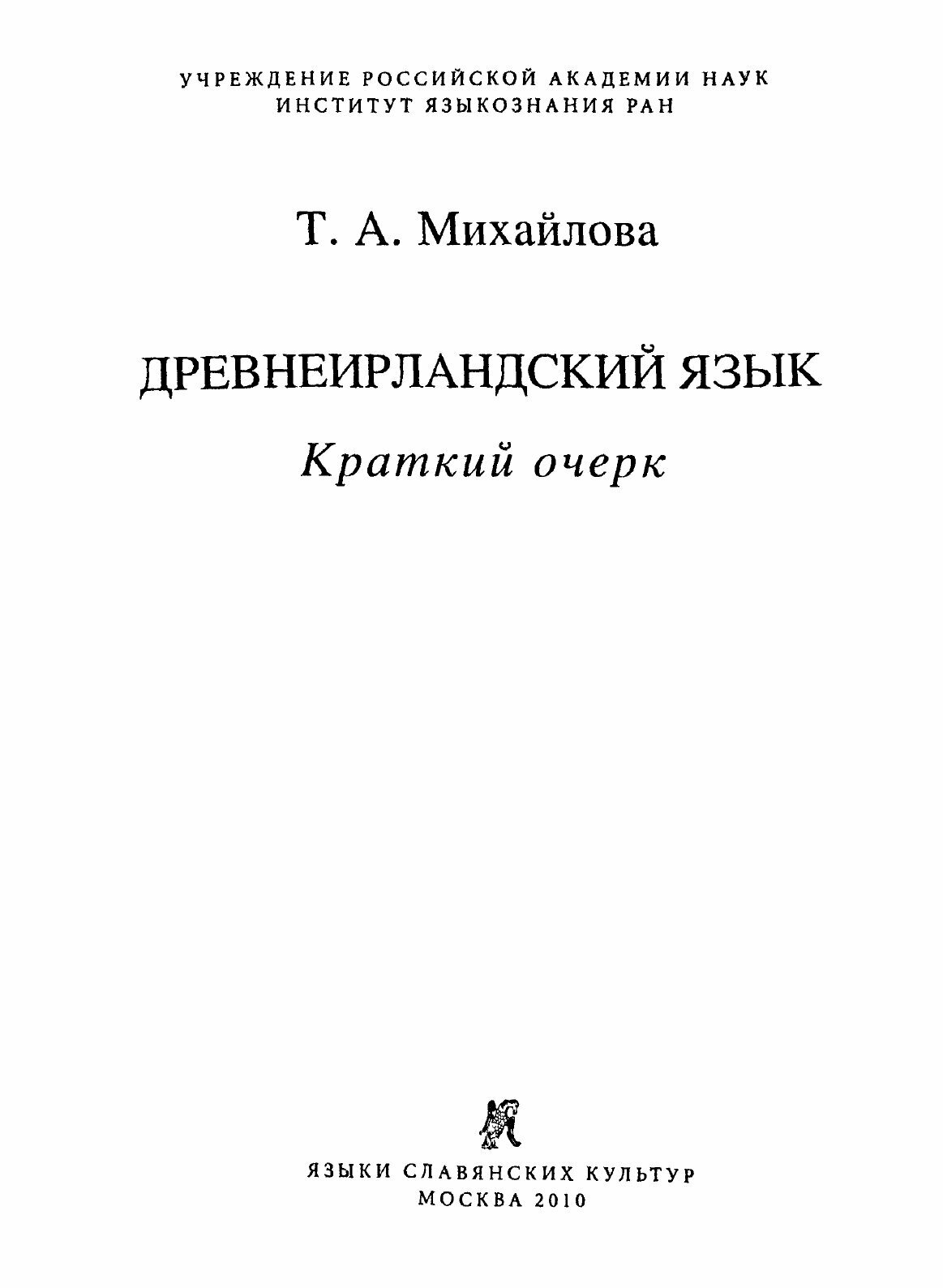 Древнеирландский язык. Краткий очерк (Т. А. Михайлова); Языки Славянской Культуры, 2010