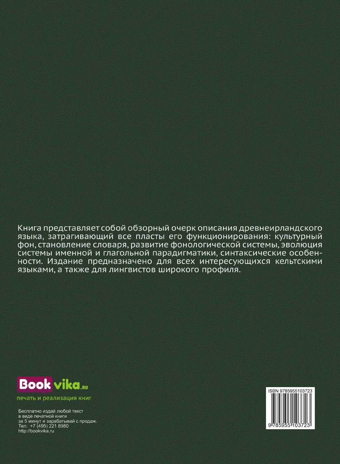 Книга представляет собой обзорный очерк описания древнеирландского языка, затрагивающий все пласты его функционирования: культурный фон, становление словаря, развитие фонологической системы, эволюция системы именной и глагольной парадигматики, синтаксические особенности. Издание предназначено для всех интересующихся кельтскими языками, а также для лингвистов широкого профиля.