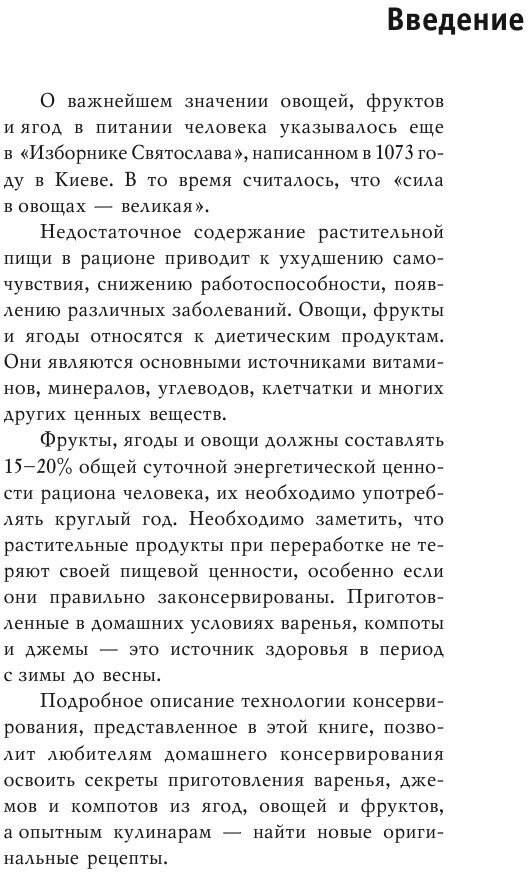 Эта книга станет хорошим подспорьем как для начинающих, так и для опытных кулинаров во время заготовки овощей, фруктов и ягод впрок. В ней описаны основы технологии консервирования и оригинальные рецепты приготовления варенья, компотов и джемов, что позволит любителям домашнего консервирования порадовать и удивить всех близких разнообразием вкусных и полезных сладких блюд.