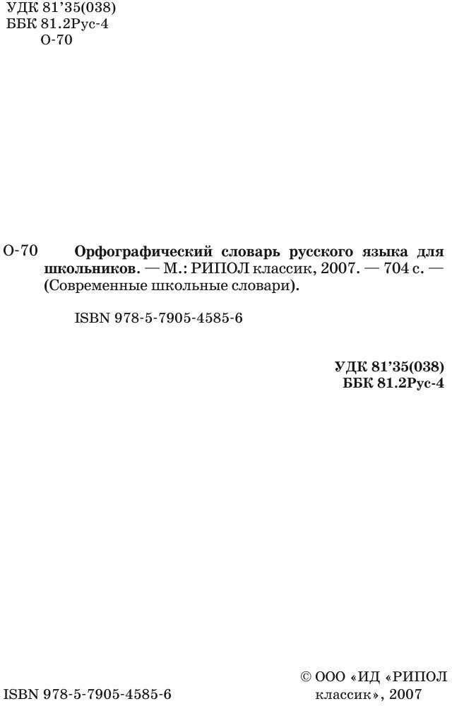 Орфографический словарь русского языка для школьников (Группа авторов); РИПОЛ Классик, 2007
