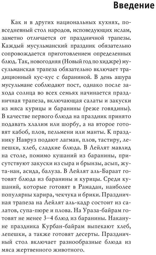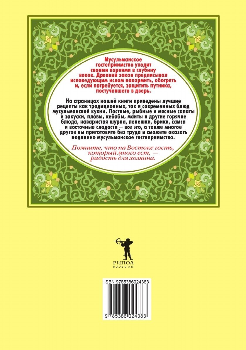 На страницах данной книги приведены лучшие рецепты как традиционных, так и современных блюд мусульманской кухни. Постные, рыбные и мясные салаты и закуски, пловы, кабобы, манты и другие горячие блюда, наваристая шурпа, лепешки, брики, самса и восточные сладости – все это, а также многое другое вы приготовите без труда, ознакомившись с рецептами, собранными в данной книге.