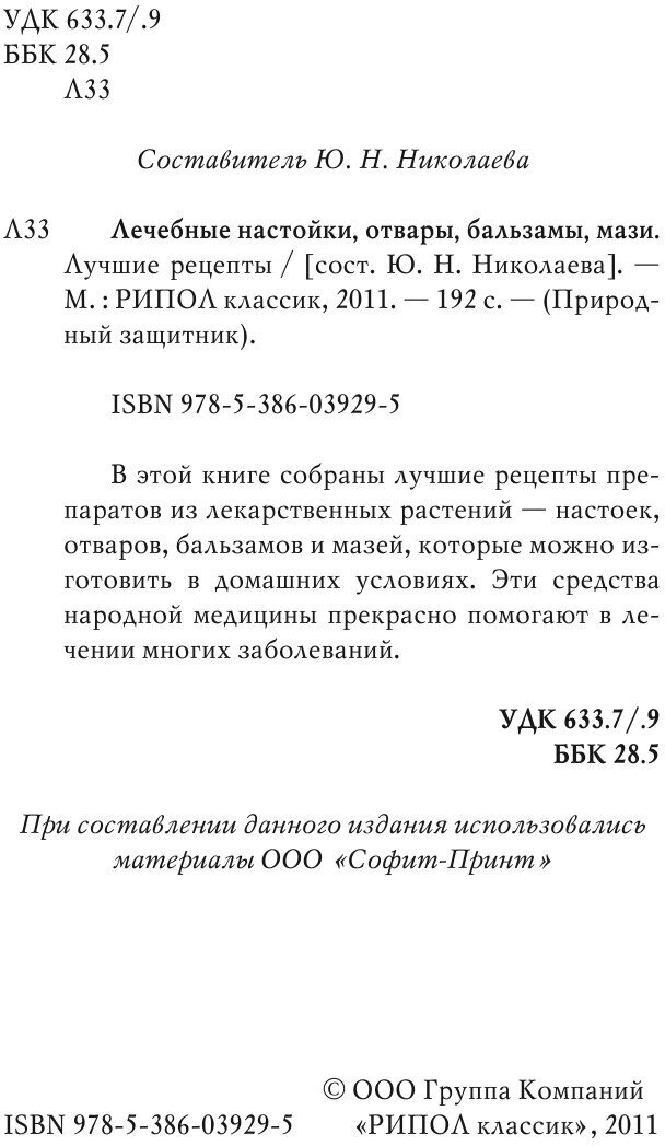 Сервис сравнения цен СкидкаГИД предлагает сравнить цены на товар «Книга: Лечебные настойки отвары бальзамы мази. Лучшие рецепты (Группа авторов); Рипол-Классик, 2011»
