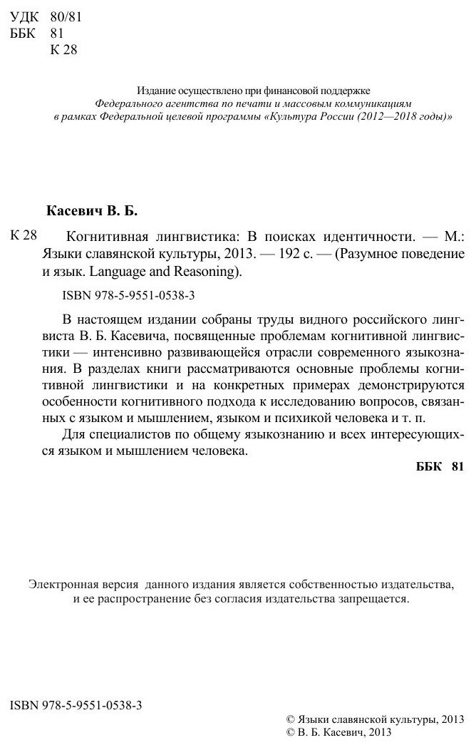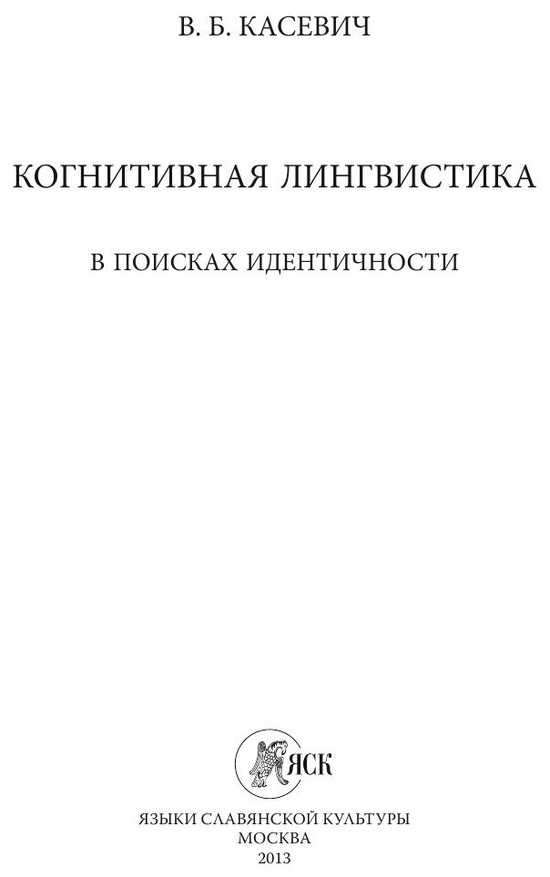 Когнитивная лингвистика. В поисках идентичности (В. Б. Касевич); Языки Славянской Культуры, 2013
