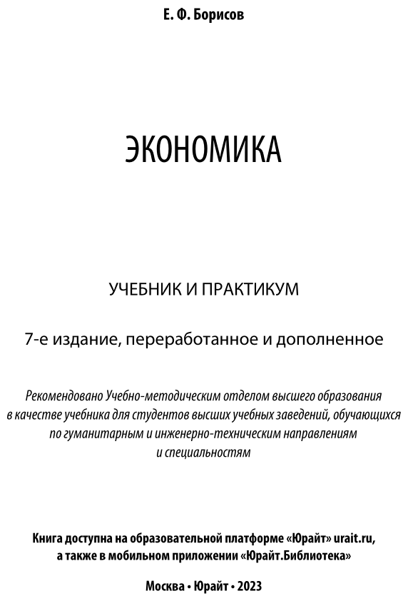 Экономика 7-е изд. пер. и доп. Учебник и практикум (Евгений Филиппович Борисов); ЮРАЙТ, 2015