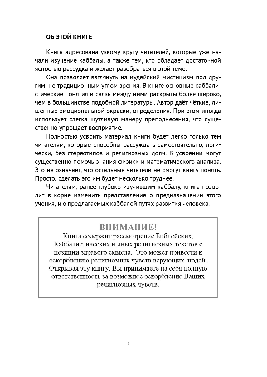 Книга раскрывает основные каббалистические понятия, связь между ними, подвергнуты анализу различные направления этого учения. Автор срывает с каббалы пелену таинственности и загадочности. Открывшаяся картина многих повергает в шок.