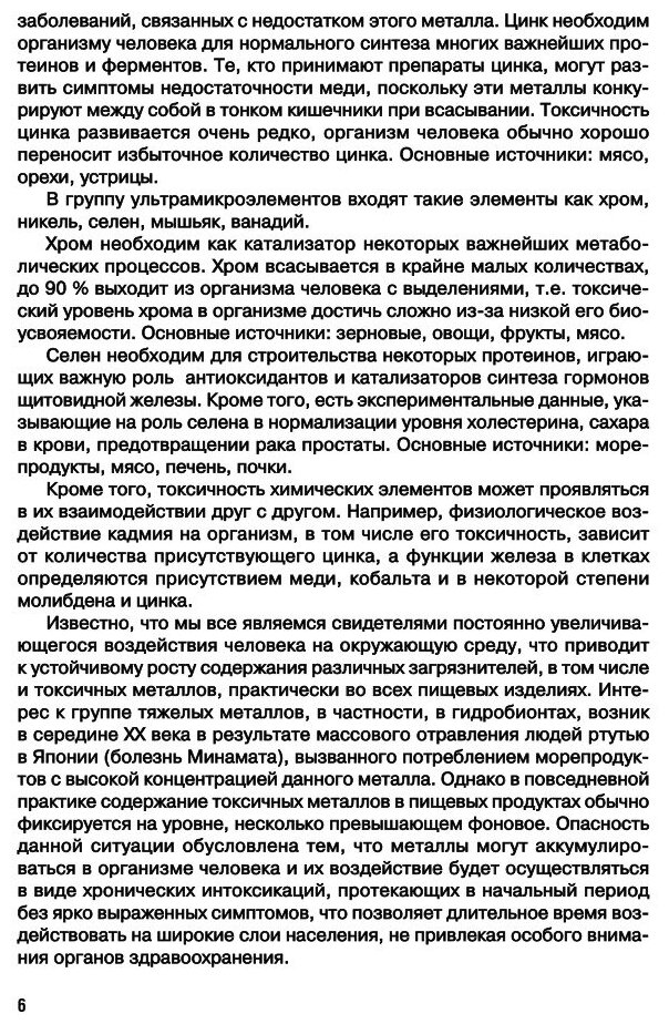 В учебном пособии описаны макро- и микроэлементы, их физико-химические свойства, распространение в природе, извлечение, применение. Показаны основные виды и пути загрязнения пищевых продуктов питания металлами, действие этих металлов на организм человека – как благоприятное, так и токсическое. Описаны гигиенические мероприятия, способствующие удалению токсичных материалов из организма человека.