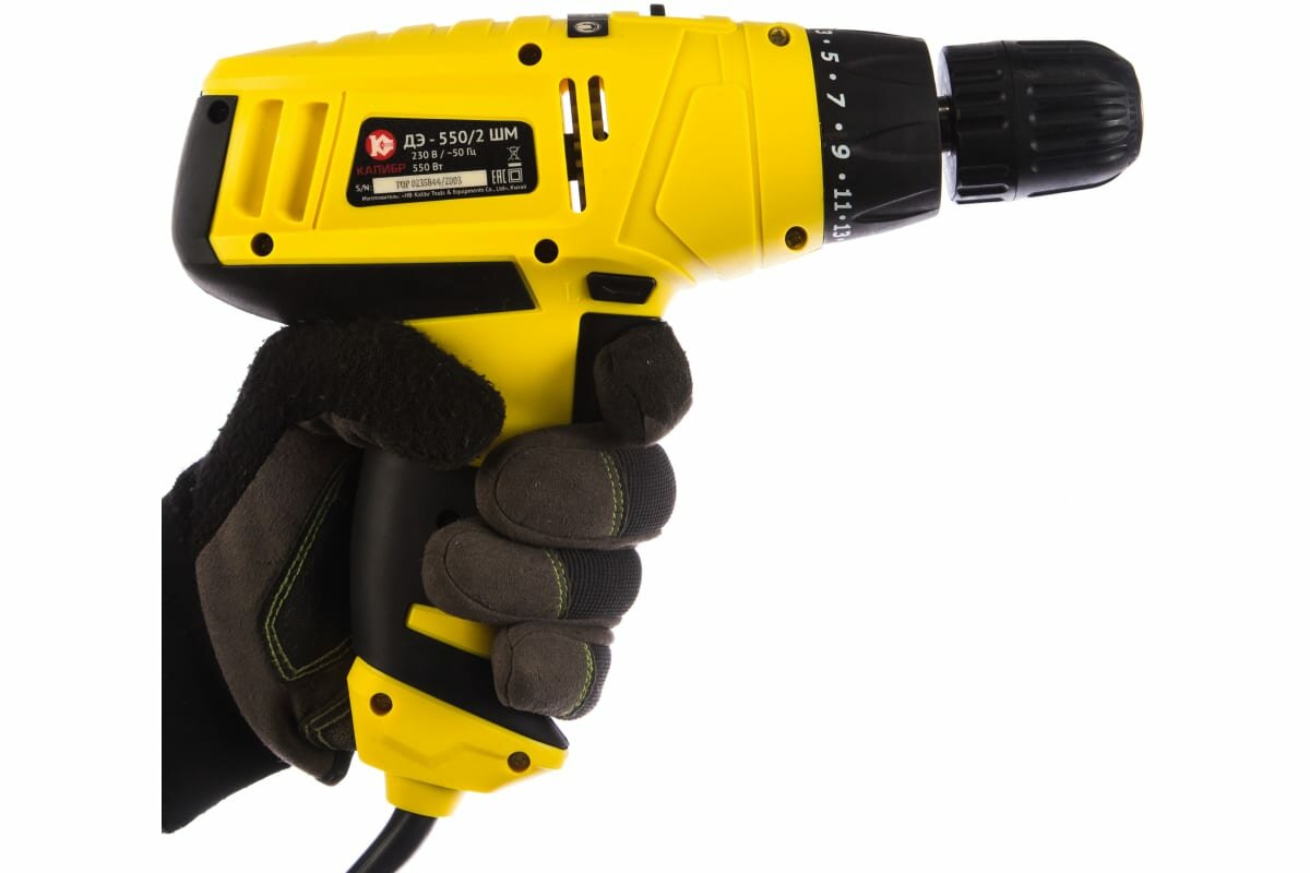 Ручная электрическая двухскоростная дрель с функцией шуруповерта Калибр ДЭ-550/2Шм предназначена для сверления отверстий в цветных и черных металлах, пластмассах, дереве и других строительных материала, а так же для завинчивания (и отвинчивания) шурупов и винтов при монтажных, отделочных и строительных работах и в некоторых видах столярных и слесарных работ в производственных и бытовых условиях.