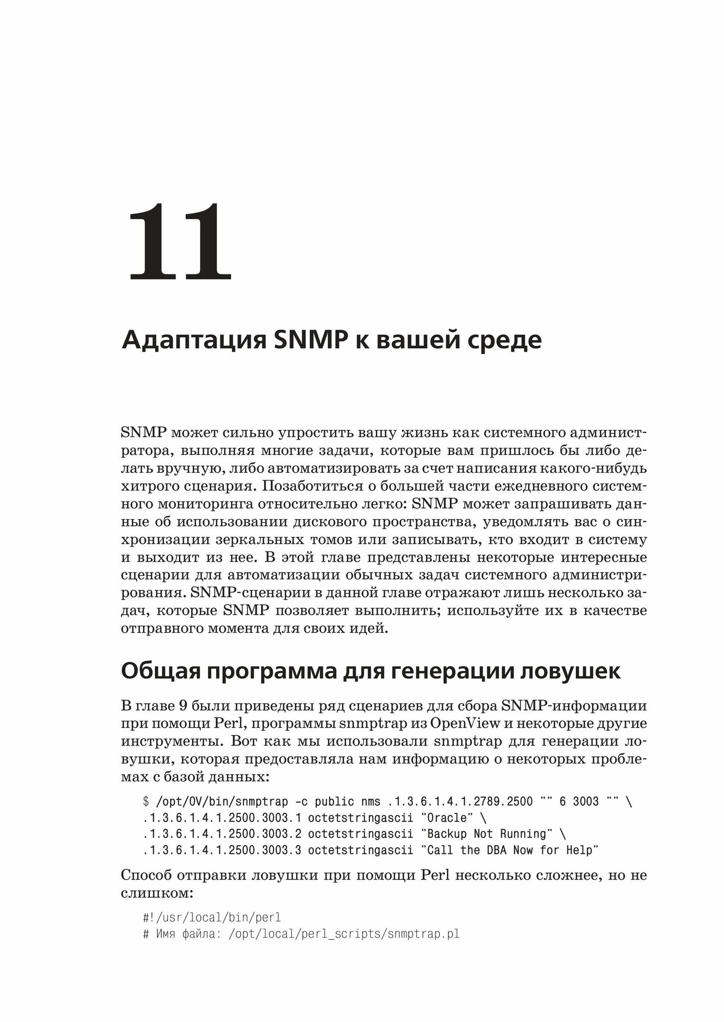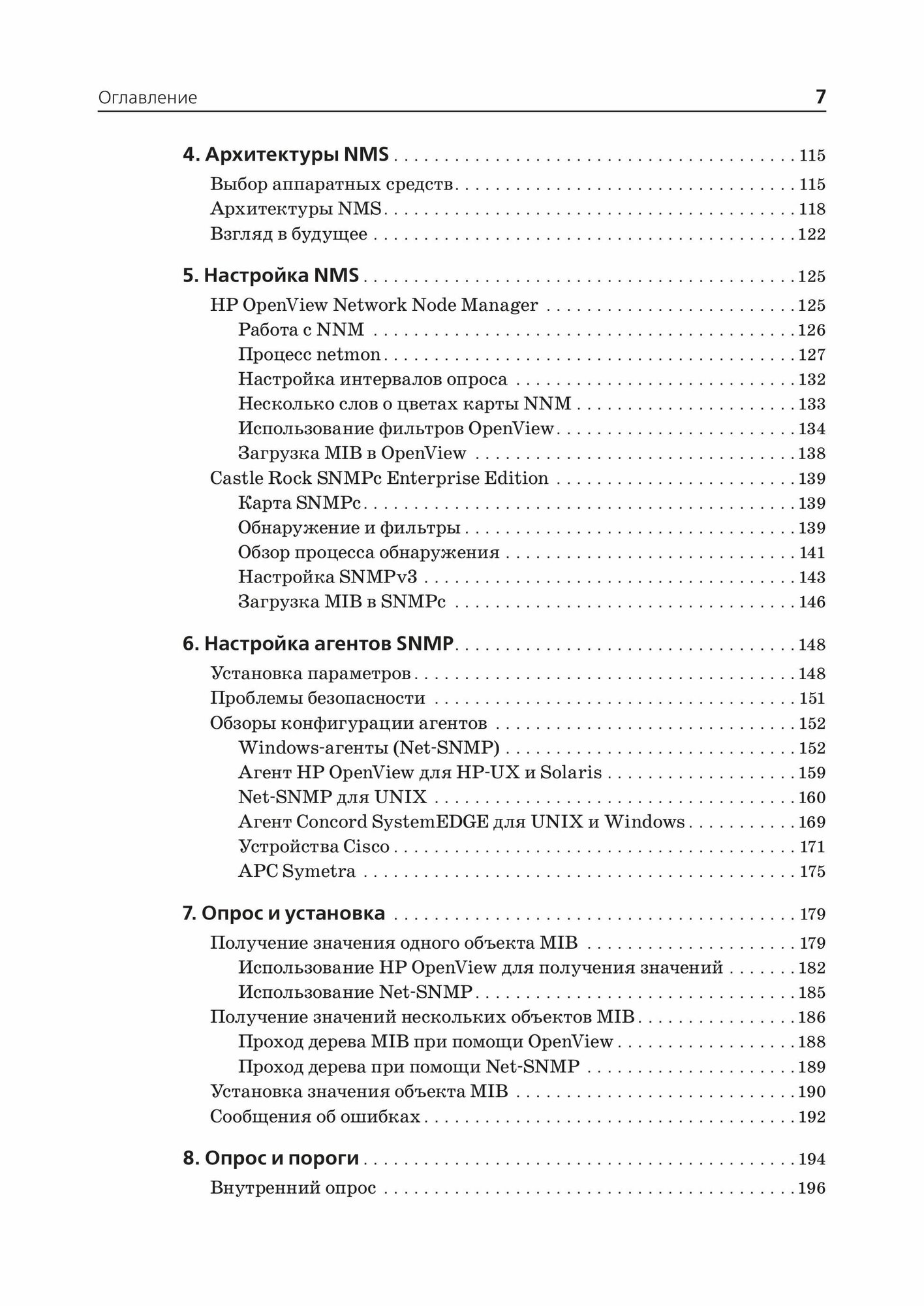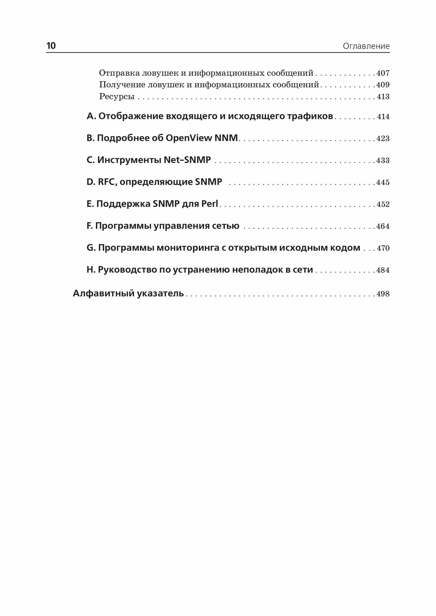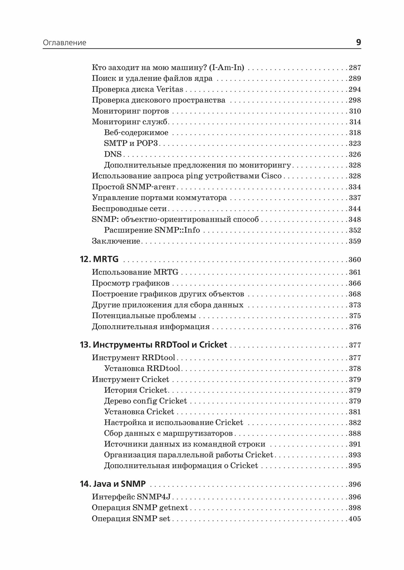 Второе издание книги «Основы SNMP» – это практическое руководство для системных и сетевых администраторов, которые пользуются протоколом SNMP для управления своими серверами и маршрутизаторами. Книга начинается с объяснения основных принципов SNMP и его работы и охватывает такие технические элементы, как идентификаторы объектов (OID), базы MIB, строки сообщества и ловушки. Что более важно, эта книга показывает вам, как пользоваться SNMP для получения полной информации о функционировании вашей сети. Внимание авторов сосредоточено на практическом системном и сетевом администрировании, конфигурации SNMP-агентов и станций управления сетью, использовании SNMP для получения и изменения переменных на сетевых устройствах и конфигурации программ управления для реагирования на ловушки, отправляемые устройствами. Главы второго издания были тщательно переработаны и дополнены, и теперь книга содержит ряд Perl-сценариев, которые помогут вам автоматизировать большее число задач по управлению. Вы найдете сценарии для мониторинга служб SMTP, POP3, HTTP и DNS, SNMP-агента на Perl, управления портами коммутатора, использования MIB Cisco Ping, а также раздел по мониторингу беспроводных точек доступа (WAP) и новую главу по Java и SNMP. Книга полна практических примеров использования различных инструментов, от популярных коммерческих продуктов, таких как HP OpenView и Castle Rock SNMPc, до разнообразного ПО с открытым исходным кодом.