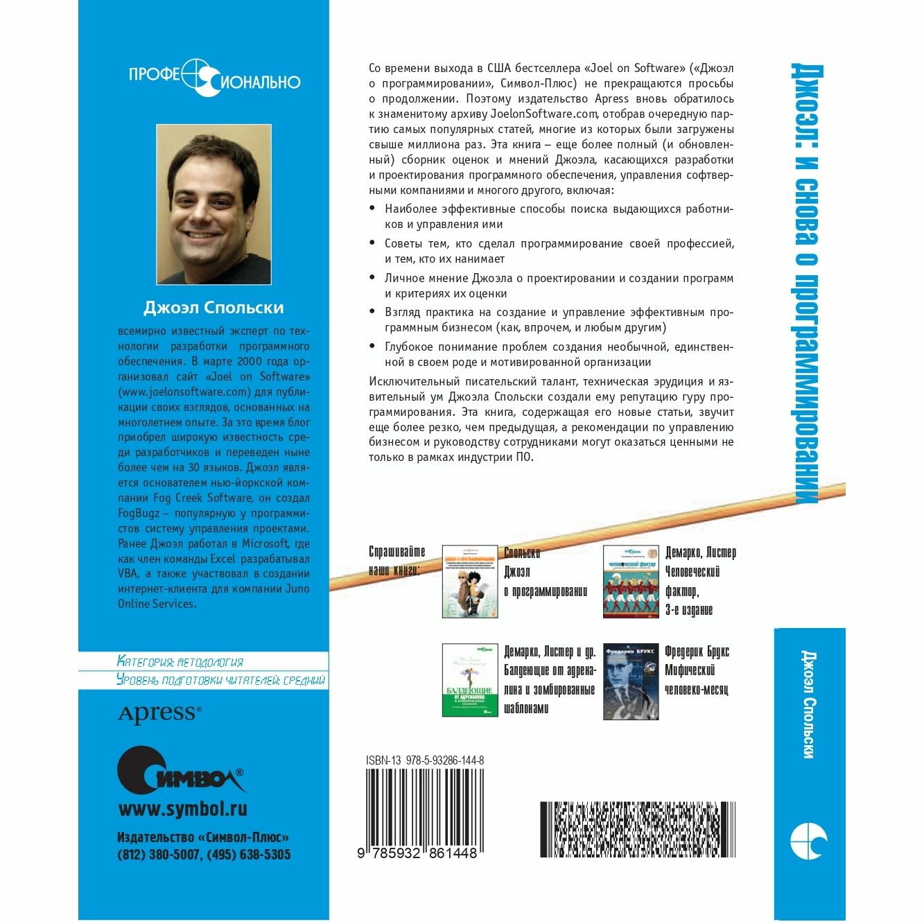 Продолжение вышедшего в 2006 году бестселлера «Джоэл о программировании» представляет собой подборку самых популярных статей, опубликованных автором на его сайте . Исключительный писательский талант, техническая эрудиция и язвительный ум Джоэла создали ему высочайшую профессиональную репутацию и принесли его сайту скандальную известность.В книге затронуты разнообразные вопросы, касающиеся разработки и проектирования программного обеспечения, управления софтверным бизнесом, эффективного поиска и привлечения высококлассных сотрудников, организации рабочего места и общения с заказчиками. Автор предлагает практические советы как программистам, так и тем, кто руководит их работой.