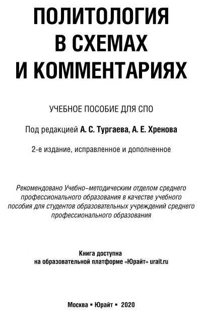 Политология в схемах и комментариях 2-е изд. испр. и доп. Учебное пособие для СПО (Александр Сергеевич Тургаев); ЮРАЙТ, 2017