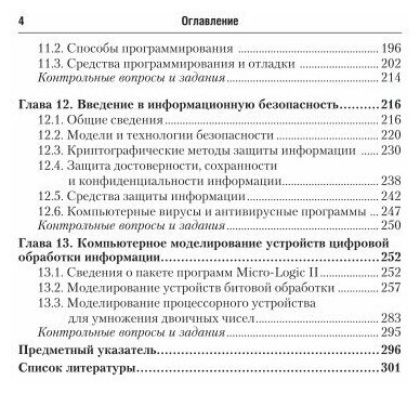 В учебнике рассмотрен широкий круг вопросов, относящихся к разным уровням обработки: первичной с помощью элементарных цифровых устройств, процессорной с использованием микрокоманд и команд, программной обработки на уровне компьютерных устройств, обработки при передаче данных по компьютерным сетям с использованием коммуникационных протоколов. Приведены основные понятия информатики и компьютерной техники. Рассмотрены вопросы информационной безопасности. Задачами данной дисциплины являются изучение широкого круга вопросов, связанных с представлением, обработкой, передачей, хранением и защитой информации, аппаратными средствами и программным обеспечением компьютеров и телекоммуникационных сетей, а также овладение навыками их применения.
