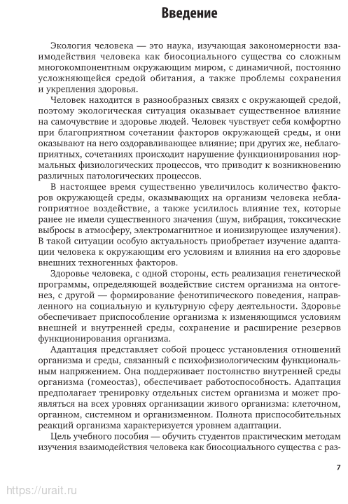 Человек находится в разнообразных связях с окружающей средой, поэтому экологическая ситуация оказывает существенное влияние на самочувствие и здоровье людей. Цель учебного пособия – обучить студентов практическим методам изучения взаимодействия человека как биосоциального существа с различными факторами окружающей среды, способам оценки состояния здоровья и адаптационных возможностей организма. Пособие снабжено практическими работами и теоретическим материалом, который расширяет знания студентов по основным разделам экологии человека. В нем излагаются методические принципы проведения исследований.