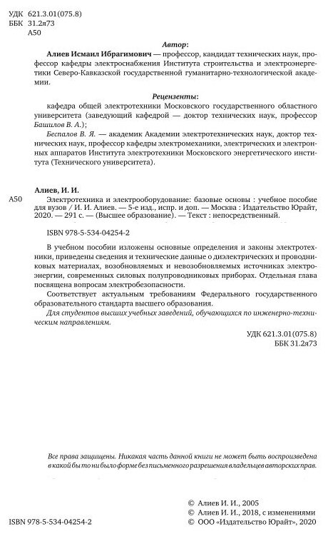 Электротехника и электрооборудование: базовые основы 5-е изд. испр. и доп. Учебное пособие для академического бакалавриата (Исмаил Ибрагимович Алиев); ЮРАЙТ, 2018